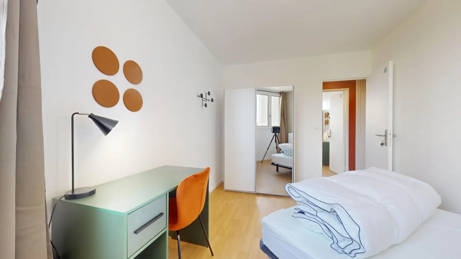 Suchen Sie eine komfortable Unterkunft in Échat-Champeval? Dieses Zimmer in einer voll möblierten 10-Zimmer-Wohnung bietet praktische Annehmlichkeiten wie einen Schreibtisch, einen Kleiderschrank und eine Kommode – alles für Ihren individuellen Lebensstil. Die Vermieter von Spotahome werden sorgfältig geprüft, sodass Sie diese Immobilie beruhigt mieten können.