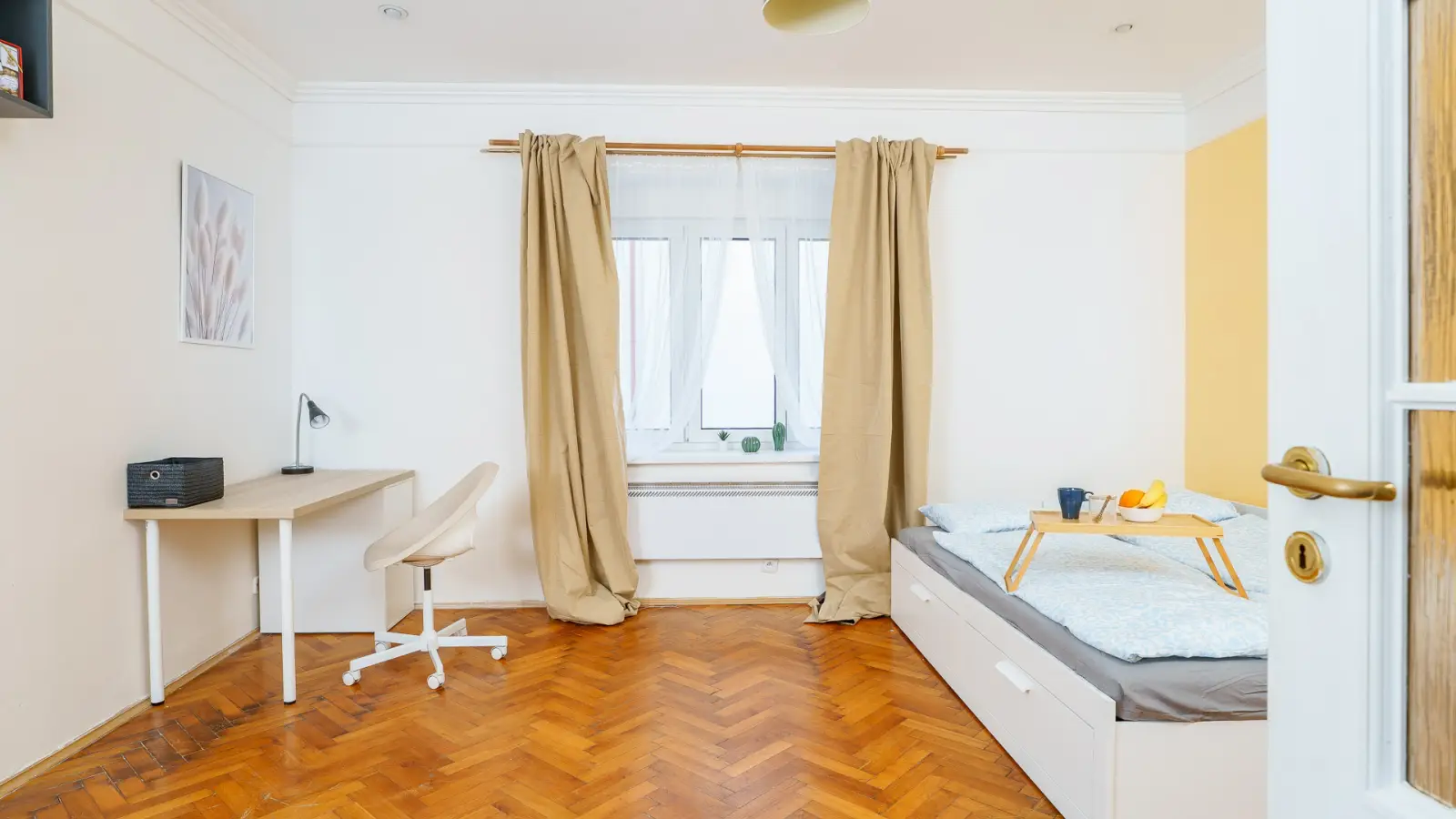 Dieses möblierte Studio-Apartment in Prag steht zur Miete. Die Wohnung verfügt über eine voll ausgestattete Küche mit Backofen und Geschirrspüler. Zentralheizung und eine Waschmaschine sind ebenfalls vorhanden. Haustiere sind erlaubt. Strom, Wasser, Gas und WLAN sind in den Nebenkosten enthalten.