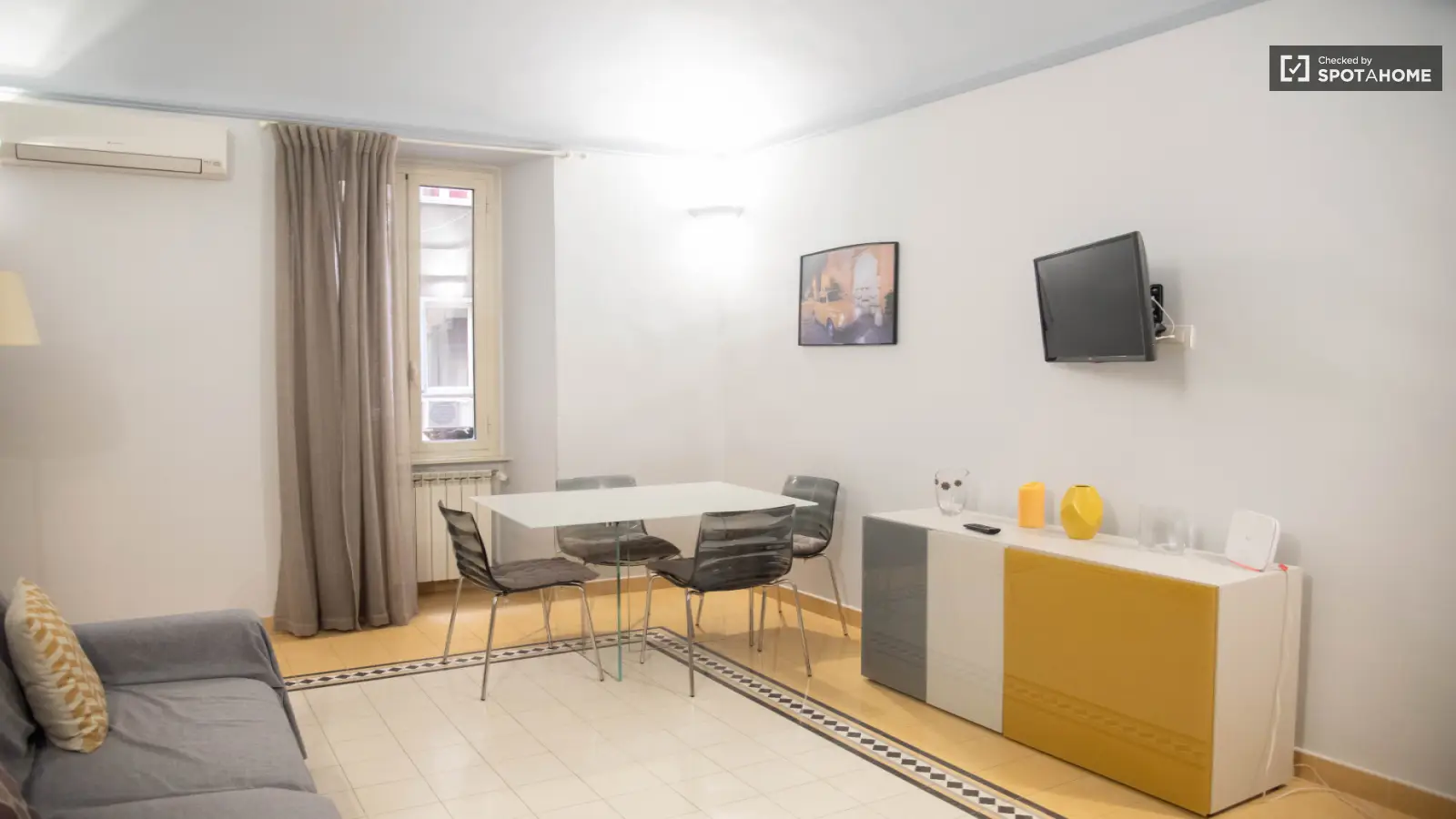 Dieses 1-Zimmer-Apartment im Rione Castro Pretorio in Rom bietet Ihnen eine komplett möblierte Wohnung mit allem Nötigen für einen komfortablen Aufenthalt. Zur Ausstattung gehören eine Waschmaschine, eine Klimaanlage mit individuell regulierbaren Einheiten, eine Zentralheizung und ein Fernseher. Eine voll ausgestattete Küche steht Ihnen für die Zubereitung Ihrer Mahlzeiten zur Verfügung. Das Apartment wurde von Spotahome persönlich geprüft, um sicherzustellen, dass alle Details den Qualitätsstandards entsprechen. Alle Nebenkosten (Strom, Wasser, Gas und WLAN) sind inklusive.