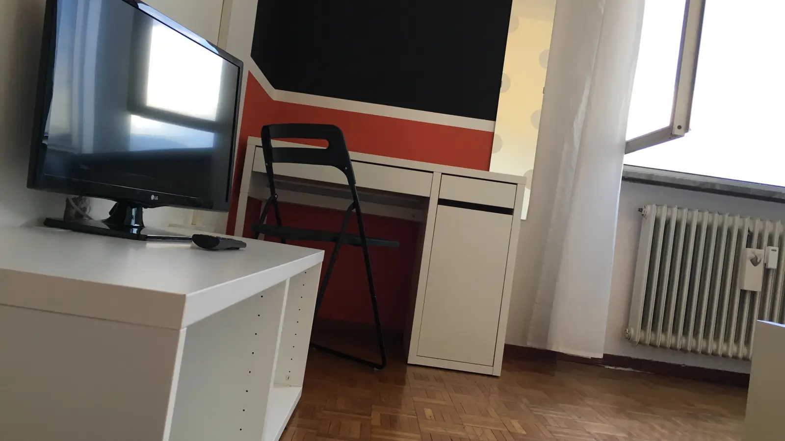 Zona Sacra Famiglia, strategische und ambitionierte Lage, verfügt über eine schöne Strophe mit nur einer Suite. Strophe Semplice ist genau richtig, um unseren Schülern Komfort und Gemütlichkeit zu bieten. Die Strophe besteht aus singulärem Gesang, 3-Arm-Armadio, Schreibtisch mit Kleiderschrank, Sofa, Sofa, TV-Portal mit Led-TV, Tisch und Specchio.