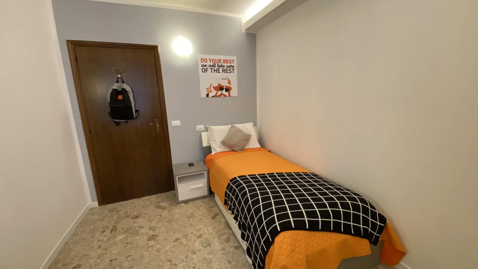 Die historische Altstadt, strategisch günstig und ehrgeizig gelegen, verfügt über eine wunderschöne Suite mit nur einer Suite. Die Suite verfügt über eine einfache Struktur, die unseren Schülern Komfort und Gemütlichkeit bietet. La stanza è dotata di letto singolo, armadio 2 ante, scrivania con portaoggetti, comodino, tendaggi, specchio, scarpiera. Ich färbe die Kinder lieber und helfe ihnen im Studio.