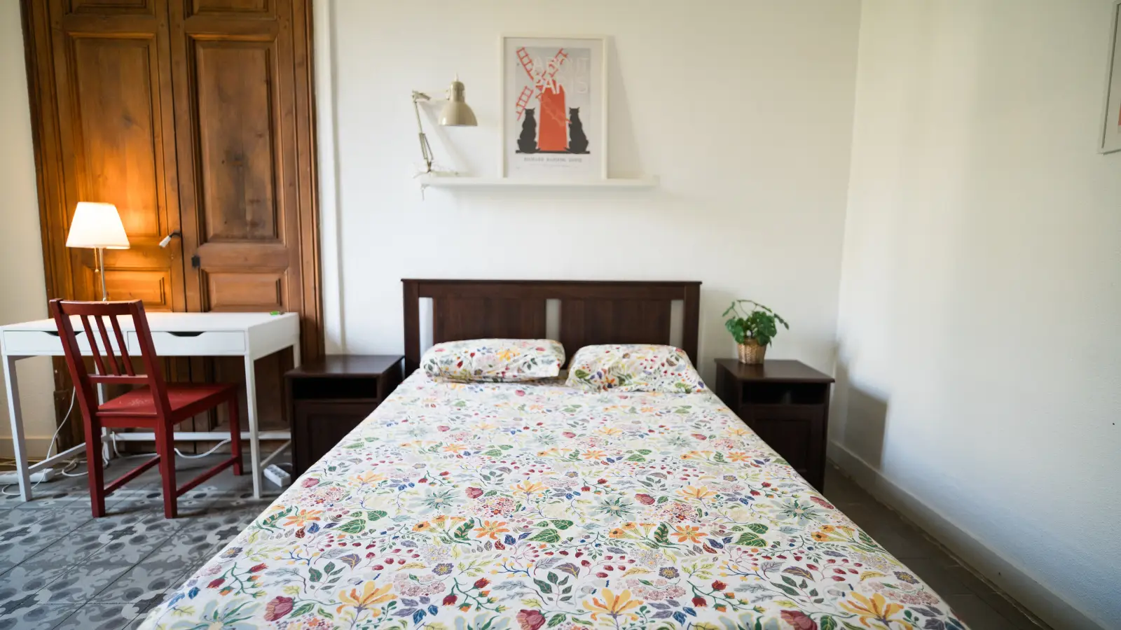 Esta habitación está diseñada para huéspedes que valoran la sencillez y la comodidad. Cuenta con una cama doble con sábanas incluidas, un amplio escritorio ideal para trabajar o estudiar, y una ventana que da a la calle y que aporta luz natural durante todo el día. Tendrás llave privada, toallas, wifi y las comodidades esenciales para una estancia sin contratiempos. El apartamento cuenta con una cocina compartida equipada para comidas sencillas y un baño compartido para los huéspedes. Es un ambiente ordenado y tranquilo donde todos pueden vivir cómodamente manteniendo su privacidad.