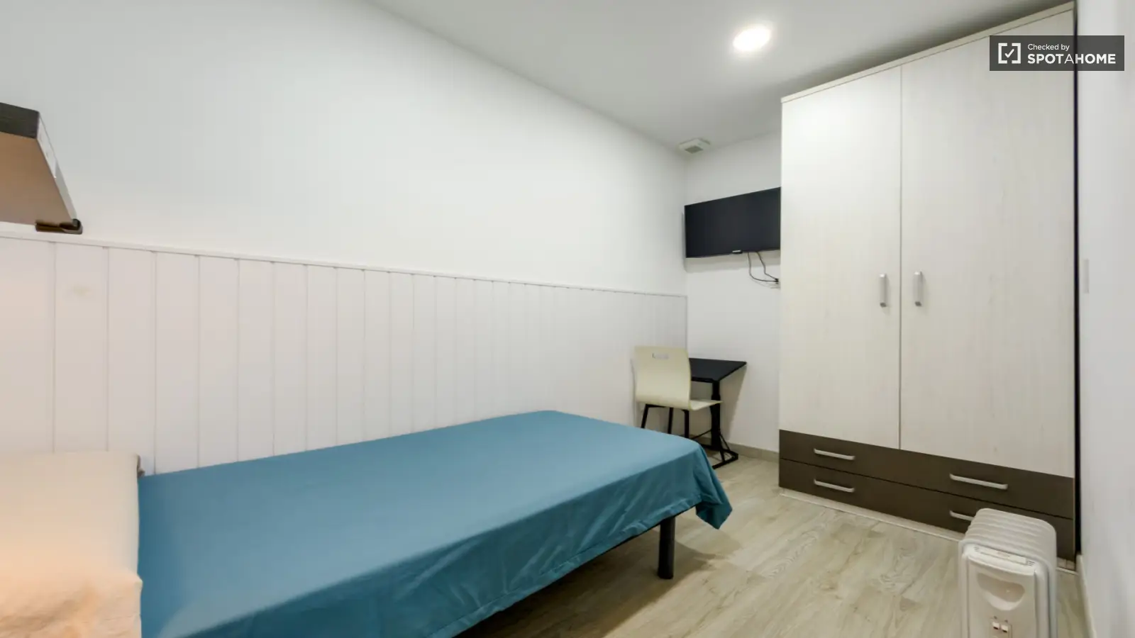 Se alquila una habitación completamente amueblada en un piso compartido de 4 habitaciones en La Marina de Port, Barcelona. El piso es interior e incluye comodidades como lavadora y secadora privadas, cocina totalmente equipada, horno y televisión. El alojamiento ha sido revisado personalmente por Spotahome.