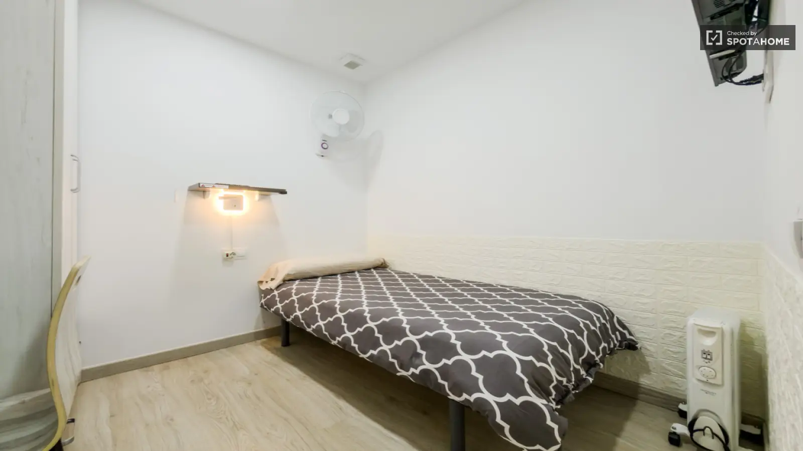 Se alquila una habitación completamente amueblada en un piso compartido de 4 habitaciones en La Marina de Port, Barcelona. El piso es interior e incluye comodidades como lavadora y secadora privadas, cocina totalmente equipada, horno y televisión. El alojamiento ha sido revisado personalmente por Spotahome.