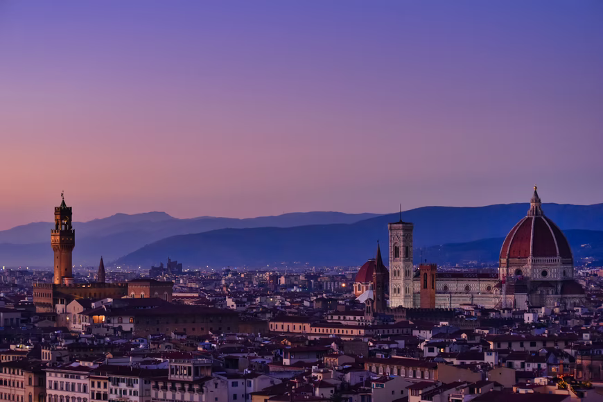 Antes de clicar, seguro que a mucha gente se le vienen las mismas imágenes de Florencia a la cabeza. Desde luego, la niña bonita del Renacimiento no podía quedarse atrás. La panorámica clásica la tendrás en la Piazzale Michelangelo, desde donde conseguirás la postal completa de Florencia, Ponte Vecchio y Santa María del Fiore incluidos. Sin embargo, es en esta última catedral donde Florencia concentra toda su belleza: desde el campanario de Giotto, con 85 metros de altura, tendrás no sólo acceso a una vista privilegiada de la ciudad, sino también de la propia catedral y de la cúpula de Brunelleschi, summum de la belleza renacentista. Y este piso no es un Caravaggio, pero no nos podrás negar lo bonito que es.