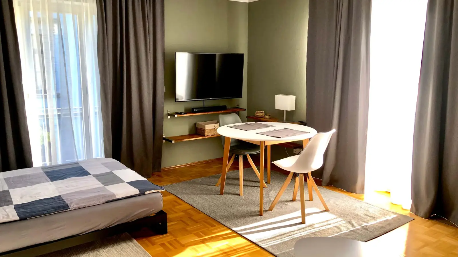 Situado directamente en el parque Forrest, en las inmediaciones del hospital universitario y del río Elba: elegante apartamento recién amueblado de 1 habitación con 2 balcones en una villa urbana con hermosas vistas al jardín, 42 m2, cocina equipada (incl. lavavajillas), Internet de fibra óptica, salón-dormitorio con cama de 140 cm, mesa de comedor, sofá y TV, armario, baño con bañera, lavadero independiente en el sótano con lavadora propia, ascensor, posibilidad de aparcamiento subterráneo (+ 75 €); El precio del alquiler es para una persona.