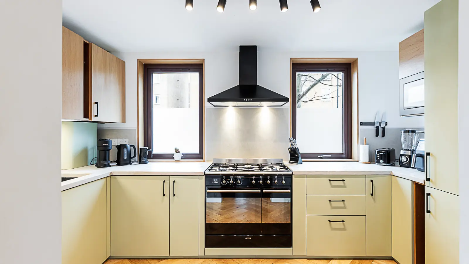 Bienvenido a una casa en planta baja elevada con un estilo elegante en North Islington, diseñada para la comodidad, el carácter y la tranquilidad de la vida londinense. Combinando la simplicidad con un estilo urbano contemporáneo, este espacio cuidadosamente diseñado se siente cálido, moderno y acogedor al instante. Las paredes en tonos suaves, los suelos de madera clara y la abundante luz natural crean un ambiente diáfano, mientras que los acentos atrevidos y las líneas limpias aportan personalidad sin recargar. Con jardín privado y excelentes conexiones de transporte, es el punto de partida ideal para explorar la capital o para una estancia más larga. El apartamento tiene capacidad para tres personas en dos dormitorios, con una cama king size y una cama individual. Hay un baño con bañera y ducha combinadas, decorado con llamativos azulejos verticales verdes, muebles de madera y espejos redondos con iluminación tenue que le dan un aire de hotel boutique. La sala de estar es luminosa y acogedora, centrada en un llamativo sofá seccional rojo que aporta calidez y energía a la estancia. Grandes puertas y ventanales de cristal inundan el espacio de luz y se abren hacia el jardín privado, ofreciendo una encantadora extensión del espacio habitable en los meses más cálidos. El comedor se encuentra junto a la cocina, creando un espacio natural para comidas informales o reuniones. La cocina es elegante y moderna, con gabinetes contemporáneos, herrajes en negro mate y electrodomésticos modernos, lo que la hace elegante y totalmente funcional para cocinar a diario. Ofrecemos precios personalizados para cualquier duración, con tarifas que varían según la fecha exacta de entrada y salida. Las tarifas comienzan desde 4704.