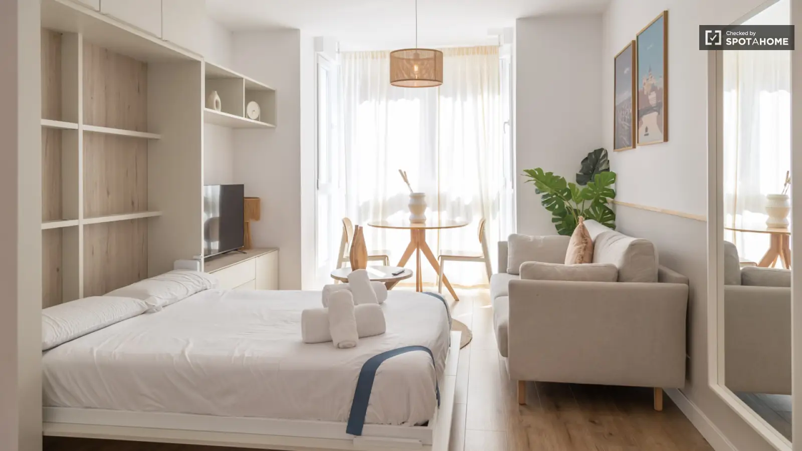El diseño, el mobiliario y la distribución pueden variar con respecto a lo que se muestra en las fotos, ya que no todos los apartamentos son idénticos. Es posible que, por motivos de disponibilidad, tengamos que reubicarle en otro apartamento similar al que ha reservado.
