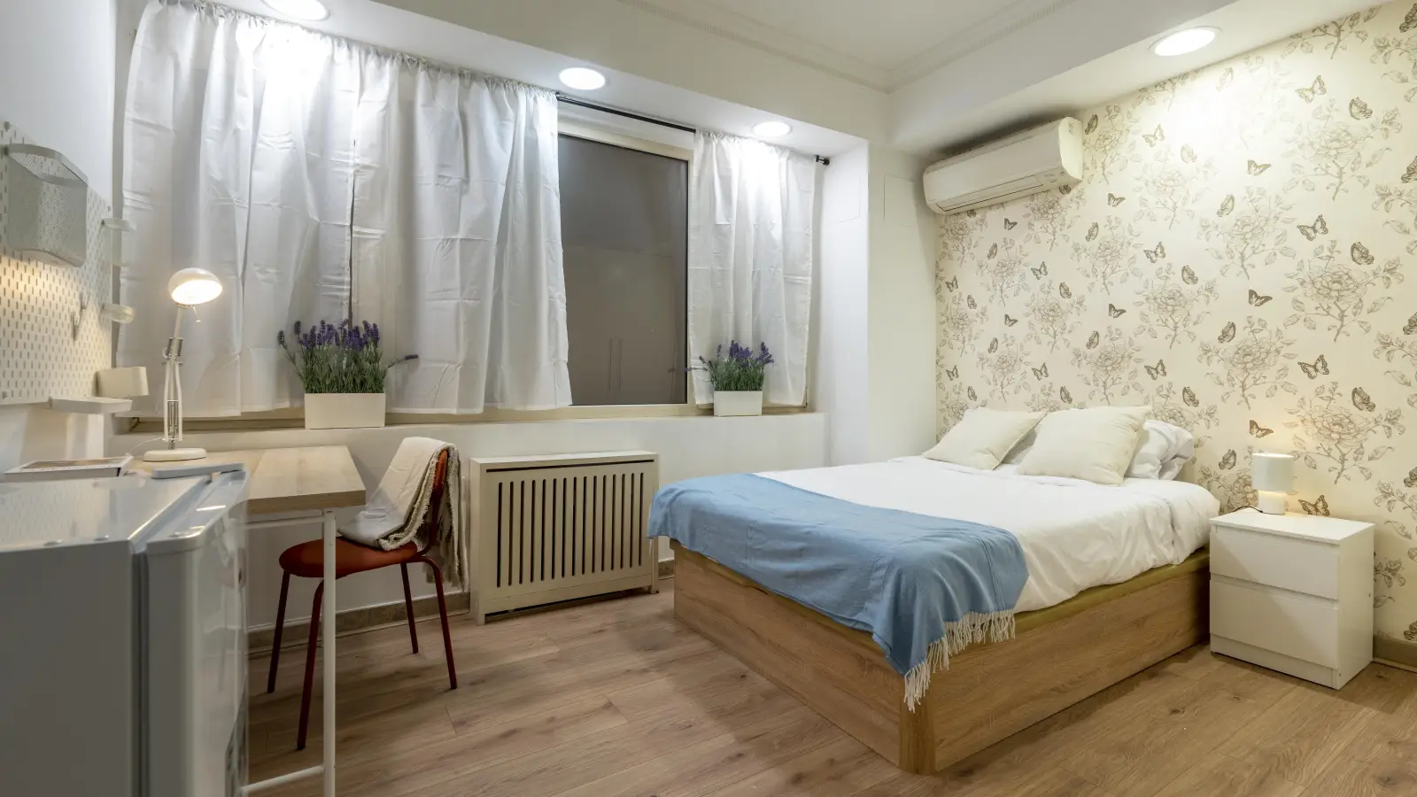 Esta habitación totalmente amueblada, con cama doble y armario independiente, se encuentra en un piso compartido de 5 habitaciones en Goya, Madrid. La habitación incluye un escritorio y una llave individual para mayor privacidad. Tenga en cuenta que el baño es compartido con otros inquilinos. Si bien Spotahome no ha verificado personalmente este anuncio, todos los propietarios se someten a un exhaustivo proceso de selección.