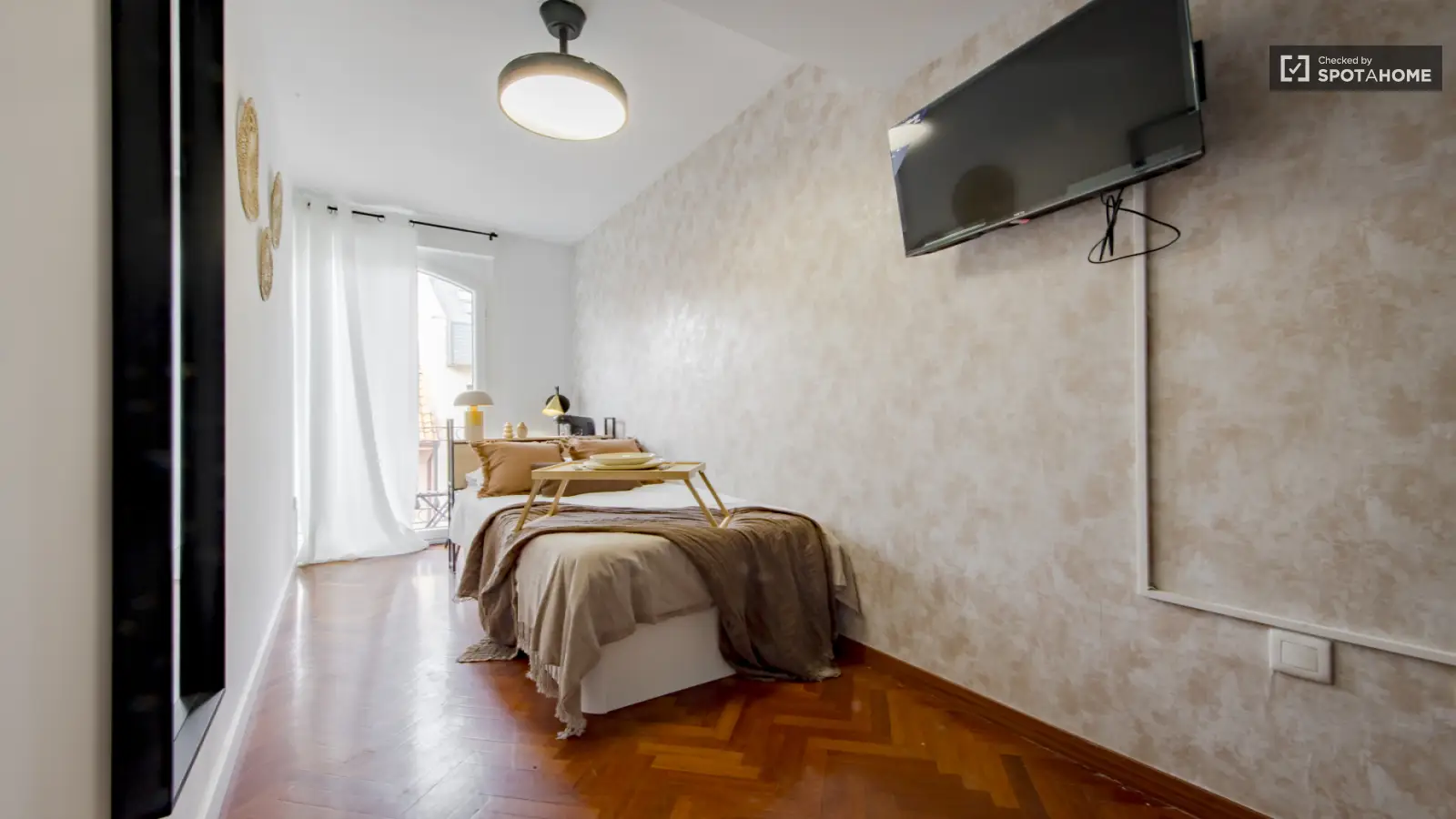 Descubre una magnífica habitación en alquiler en un piso compartido de 6 habitaciones ubicado en el vibrante barrio de Canillas, en Madrid. La propiedad está completamente amueblada y ofrece un espacio confortable. Si bien Spotahome no ha inspeccionado personalmente esta propiedad, te aseguramos que todos los propietarios en Spotahome son minuciosamente verificados para garantizar tu satisfacción. Ten en cuenta que no se permiten parejas. La propiedad cuenta con unidades individuales de aire acondicionado, lo que permite regular la temperatura a tu gusto. Todos los gastos, incluyendo electricidad, agua, gas y wifi, están incluidos en los límites globales, lo que garantiza una configuración conveniente para los inquilinos.