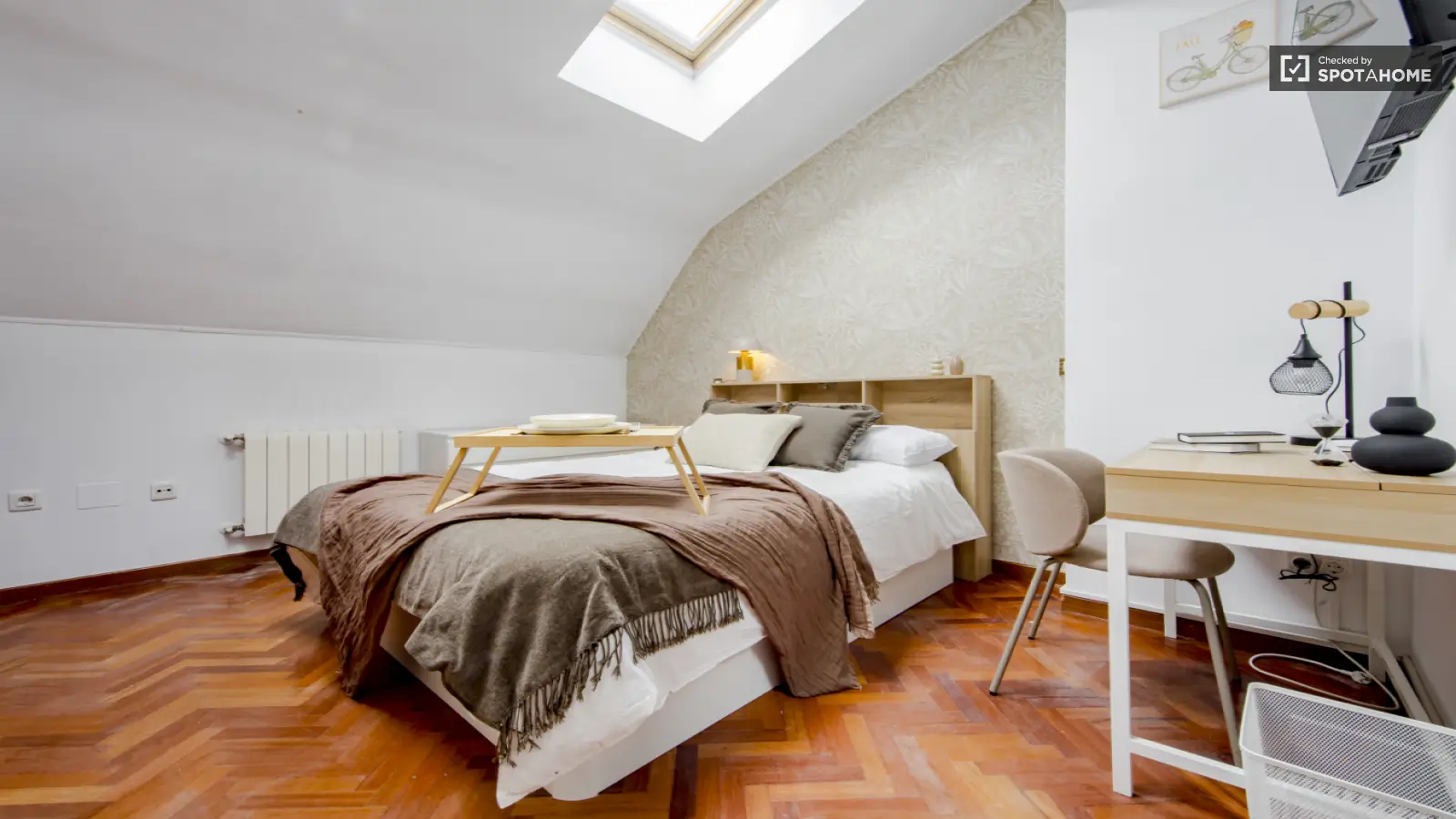 Descubre una magnífica habitación en alquiler en un piso compartido de 6 habitaciones ubicado en el vibrante barrio de Canillas, en Madrid. La propiedad está completamente amueblada y ofrece un espacio confortable. Si bien Spotahome no ha inspeccionado personalmente esta propiedad, te aseguramos que todos los propietarios en Spotahome son minuciosamente verificados para garantizar tu satisfacción. Ten en cuenta que no se permiten parejas. La propiedad cuenta con unidades individuales de aire acondicionado, lo que permite regular la temperatura a tu gusto. Todos los gastos, incluyendo electricidad, agua, gas y wifi, están incluidos en los límites globales, lo que garantiza una configuración conveniente para los inquilinos.