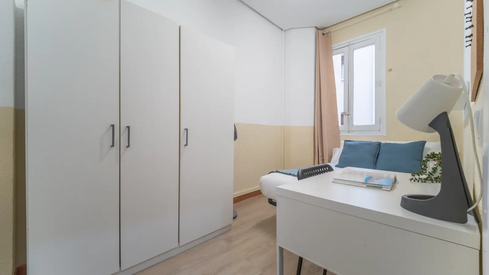 Dormitorio 8 tiene una cama doble, escritorio, y un amplio armario. La habitación es interior y se puede asegurar con una llave independiente.