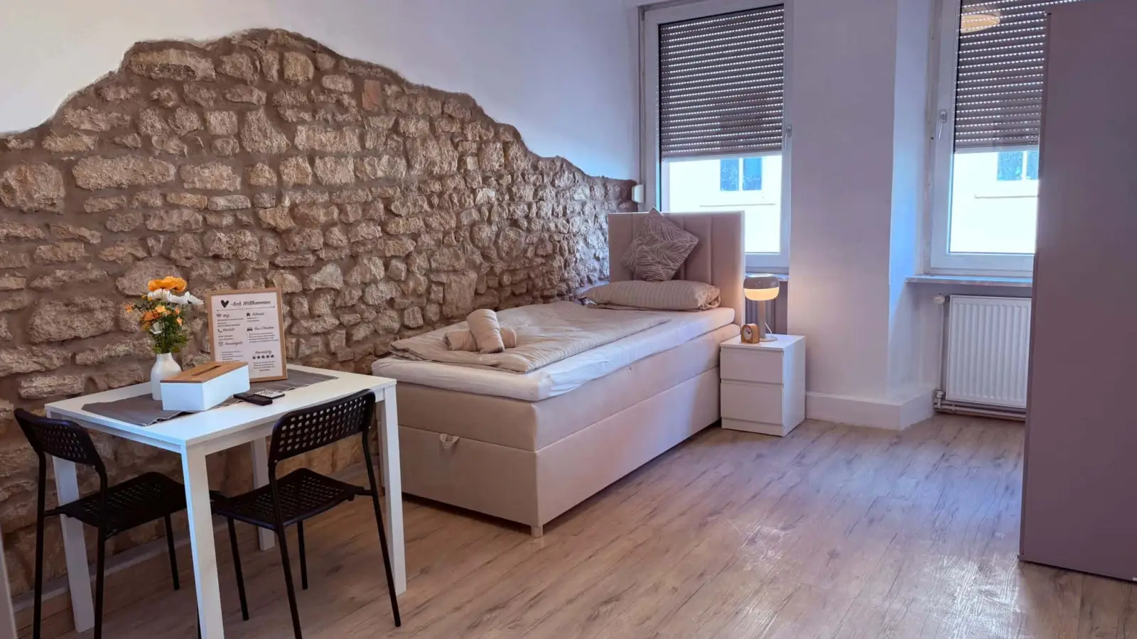 Diese gemütliche und gut ausgestattete Wohnung in Mainz bietet alles, was Sie für ein komfortables Leben benötigen. Die Wohnung ist vollständig möbliert: Schlafzimmer mit Bett und Kleiderschrank, Wohnzimmer mit Tisch und Stühlen, sowie eine komplett eingerichtete Küche. Zusätzlich sind alle grundlegenden Haushaltsgegenstände vorhanden – Sie müssen nur Ihre persönlichen Sachen mitbringen. Die Wohnung wird als Pauschalmiete angeboten e ist ideal for alle, the unkompliziert einziehen möchten.