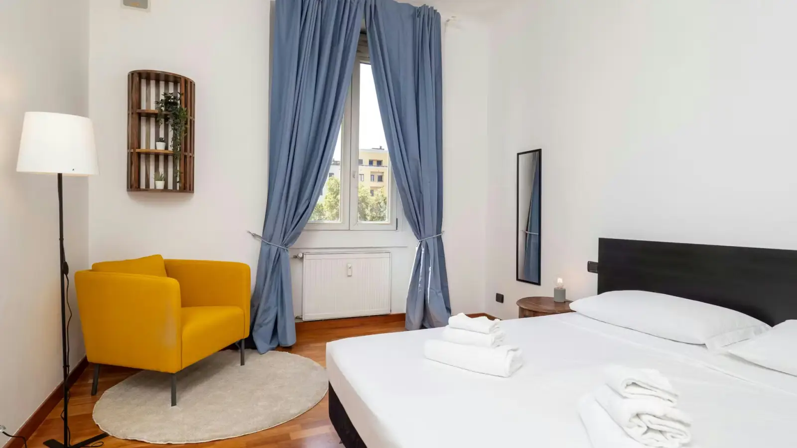 El apartamento en Piazza XXV Aprile es un apartamento de tres habitaciones que consta de un amplio salón, cocina totalmente equipada, dos dormitorios con cama doble y un baño. Se encuentra en una cuarta planta con ascensor y tiene vistas a Porta Garibaldi. Qué encontrarás: Cocina, Wifi, zona de trabajo, TV, lavadora, aire acondicionado.