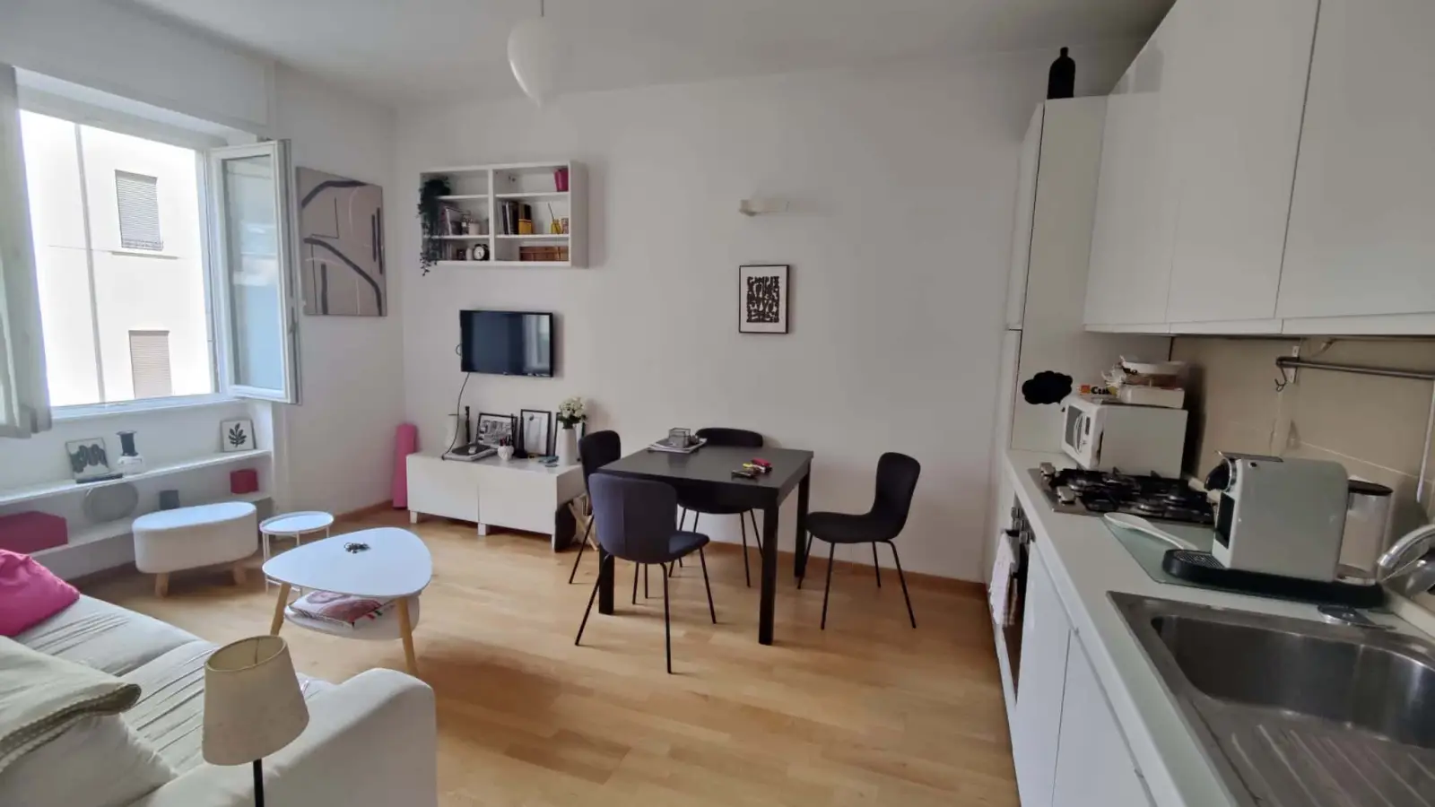 L'appartamento è arredato con gusto e dotato di tutti i comfort moderni: Wi-Fi Aria condicionada y riscaldamento centralizado Lavadora y lavatoviglie Portone blindato y sistema de alarma Utensilios de cocina y pentole incluidos.