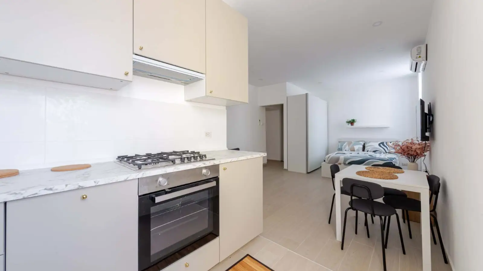 ESP Un coqueto piso de aproximadamente 45 metros cuadrados, ideal para quienes buscan un hogar cómodo y práctico. La propiedad cuenta con una distribución bien organizada, con una cocina y sala de estar de planta abierta que se integran a la perfección con el dormitorio, creando un espacio acogedor y luminoso.