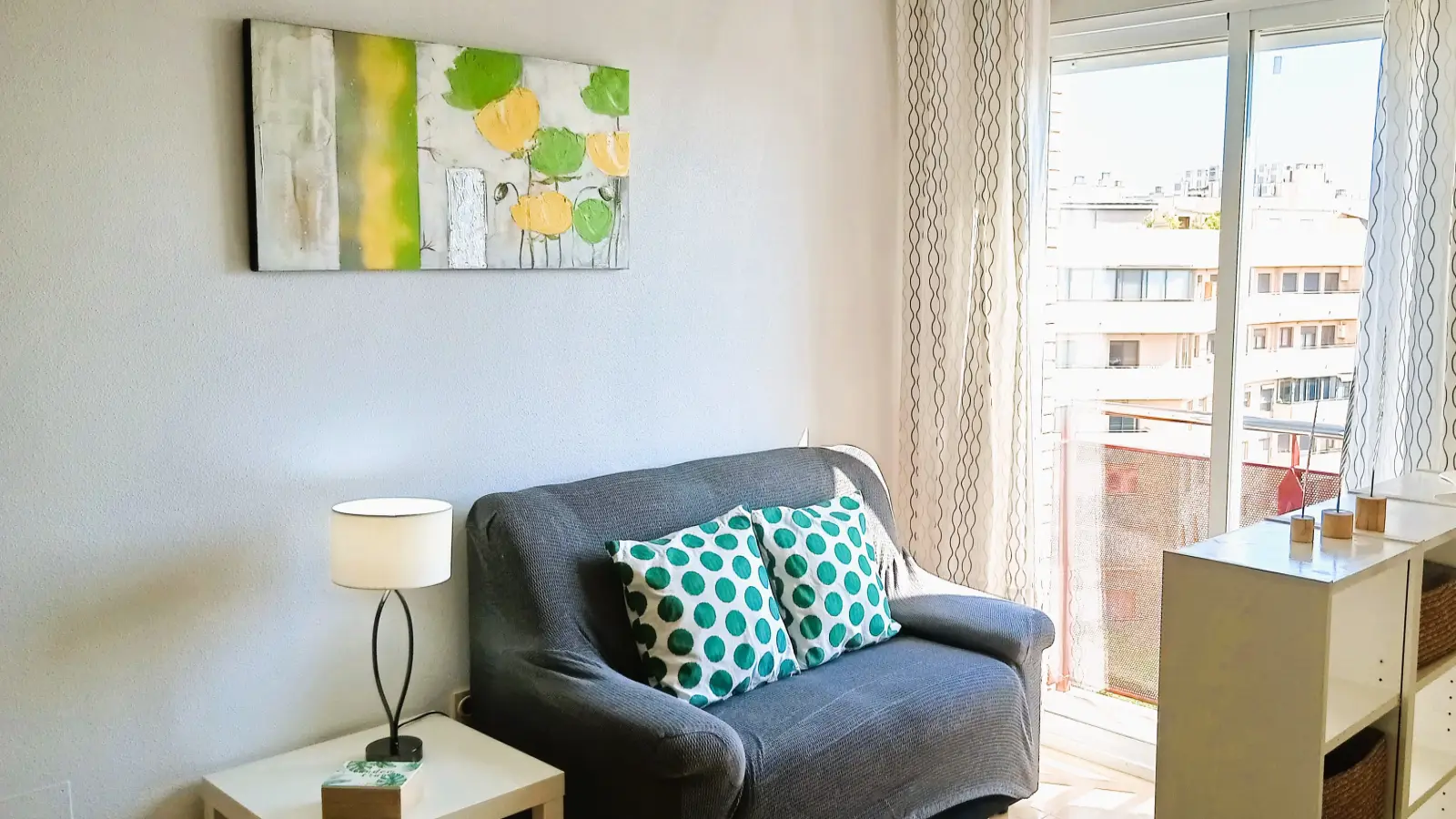 Ubicado en Murcia, en un barrio tranquilo. Fácil acceso al transporte público. Cerca de supermercados, restaurantes y tiendas. El apartamento estudio está completamente amueblado, es moderno y recibe mucha luz natural.
