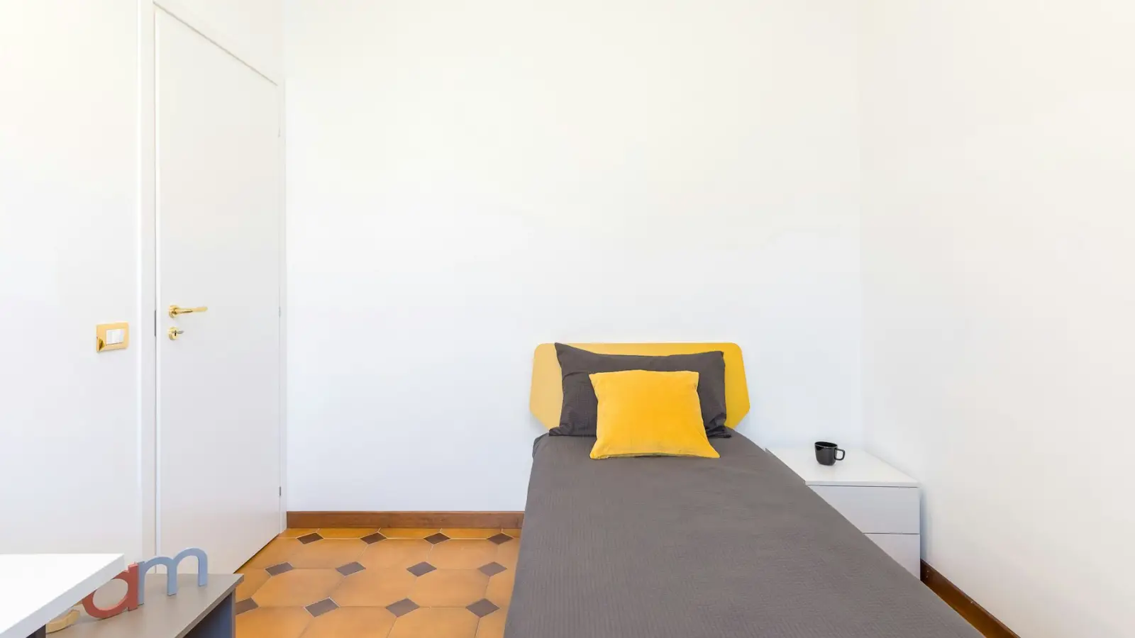 Bienvenidos a nuestra habitación diseñada especialmente para estudiantes, donde hemos cuidado cada detalle para garantizar un entorno ideal. La comodidad y la funcionalidad eran nuestros principales objetivos, y el resultado es sorprendente. Un espacioso escritorio de 135 cm, diseñado para ofrecer un entorno de estudio cómodo y funcional. Tendrás todo el espacio que necesitas para trabajar y concentrarte sin ningún obstáculo. Una silla Calligaris, cuidadosamente diseñada para garantizar la máxima comodidad incluso durante largas sesiones de estudio. Podrás sentarte durante horas sin sentir ninguna molestia, concentrándote por completo en tus actividades. La cama está equipada con un colchón ortopédico, diseñado específicamente para ofrecerte un descanso regenerador. Olvídate de echar de menos tu cama en casa, porque aquí podrás disfrutar de un sueño tranquilo y reparador. El armario de 3 puertas, amplio y bien organizado, es tu aliado para mantener tu habitación siempre ordenada. Podrás ordenar tu ropa, libros y objetos personales de forma práctica y eficaz, eliminando todo rastro de desorden. Elige esta habitación diseñada especialmente para ti, donde la comodidad y la organización se fusionan en un ambiente estudiado hasta el más mínimo detalle.