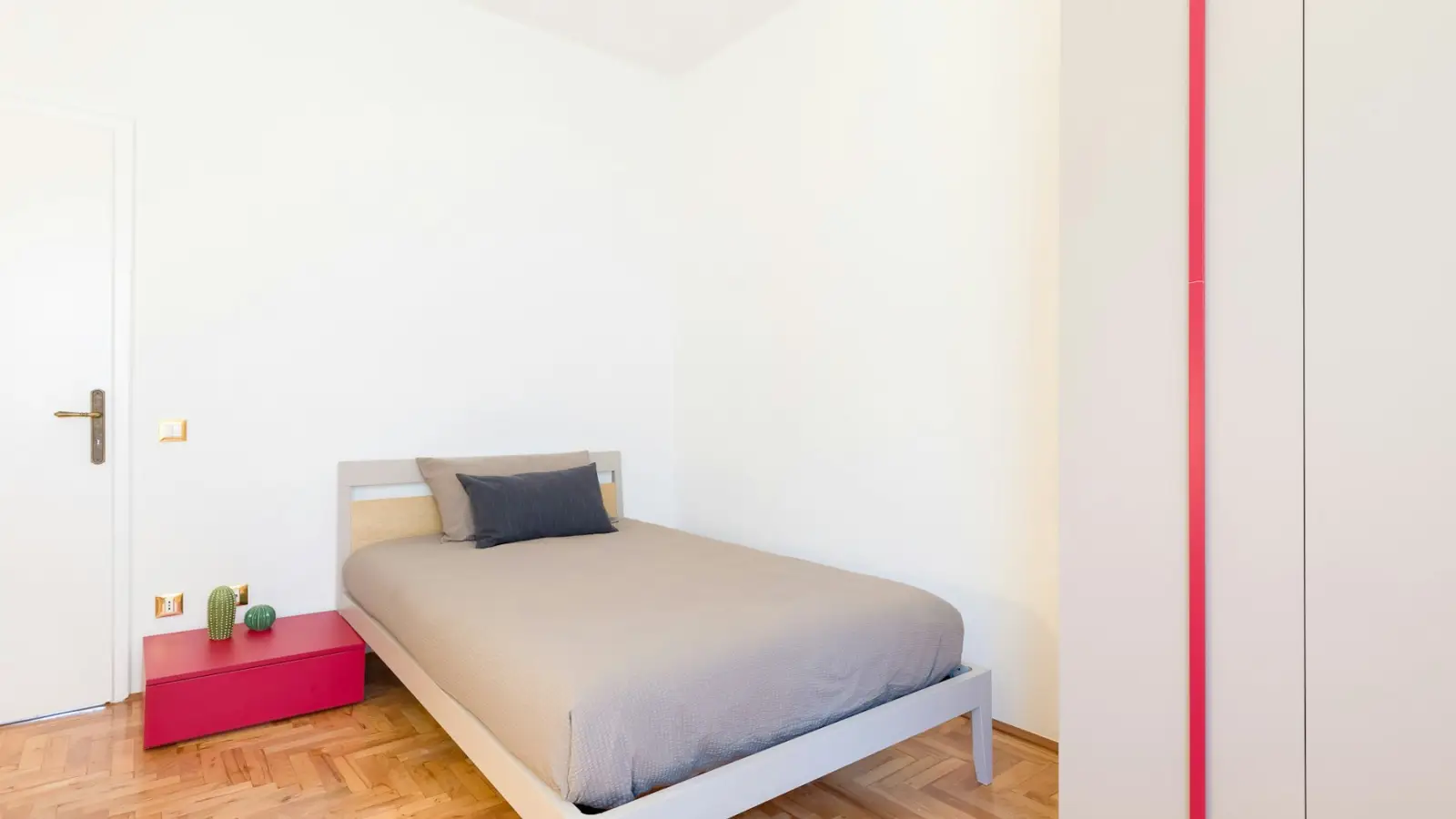 Entra en una espaciosa habitación con un diseño refinado, creada para ofrecerte un ambiente agradable y funcional durante tu estancia en Padua. Estamos convencidos de que las características de esta habitación, como la cama individual y media con un cómodo colchón ortopédico, el escritorio de 150 cm de ancho, el armario de tres puertas y la silla Calligaris, la convierten en una de las propuestas más atractivas de la ciudad. La cama queen-size te garantizará la máxima comodidad y un sueño reparador gracias a su colchón ortopédico de alta calidad. El espacioso escritorio te ofrecerá todo el espacio que necesitas para estudiar, trabajar o dedicarte a tus pasiones. El armario de tres puertas te permitirá mantener tu armario siempre ordenado. Finalmente, la silla Calligaris, además de elegante, le proporcionará un soporte ergonómico para trabajar durante horas sin cansarse. Hemos cuidado cada detalle para crear un ambiente acogedor y funcional, para que su estancia en Padua sea lo más placentera posible.