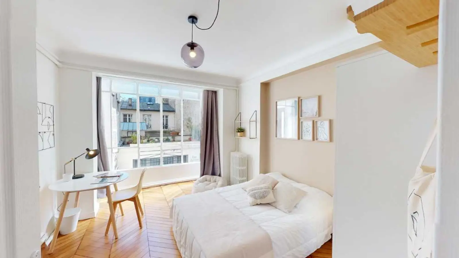 Esta encantadora habitación privada en un piso compartido totalmente equipado, amueblado y con todos los gastos incluidos en París combina comodidad y diseño. Cuenta con mobiliario del hogar, incluyendo una cama con almohadas y edredón. ¡Solo faltan tus cosas para que te sientas como en casa! La habitación se puede cerrar con llave si deseas mayor privacidad. El piso compartido se encuentra en el barrio de Val de Grâce, en pleno centro de París. Numerosas tiendas, transporte público y restaurantes están a poca distancia. El apartamento está en la primera planta sin ascensor. Está totalmente equipado y consta de una amplia cocina con nevera, microondas, sartenes, vajilla, utensilios de cocina, hervidor de agua… El alojamiento también incluye tabla de planchar, lavadora, tendedero y plancha. Además, encontrarás artículos de limpieza: aspiradora sin bolsa, recogedor y cepillo, escoba, fregona y cubo… Todos los pisos compartidos amueblados de Joivy incluyen todos los gastos: seguro de vivienda, agua, electricidad, wifi ilimitado, gastos de comunidad y tasa de residuos domésticos.