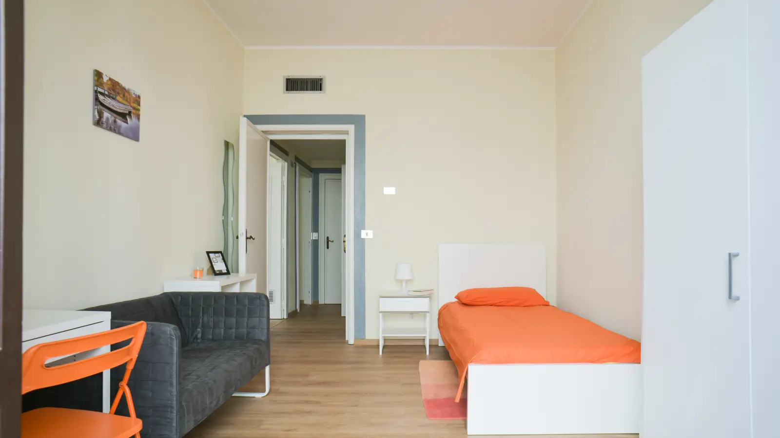 Zona Centro Storico Piazza Garibaldi, posición estratégica y ambita, si affitta una bellissima stanza Suite singola ristrutturata appositamente per offrire comfort e comodità ai nostri Studenti. La estrofa es dotata di letto singolo, armadio 3 ante, scrivania, comodino, tendaggi, specchio,libreria,divanetto,mobile tv y un bellissimo balconcino. I colori delle pareti favoriscono il buon umore e aiutano nello studio.