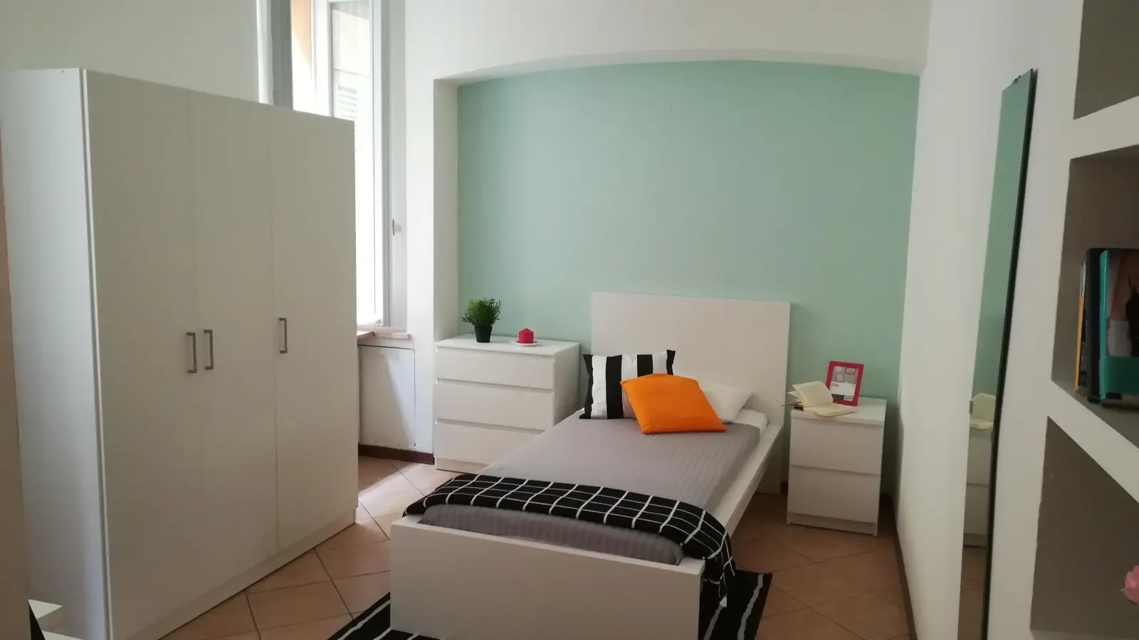 Zona Centro histórico en el área pedonale, posición estratégica y ambita comeda a tutti i servizi,fermata autobus supermercato farmacia negozi e locali. Affittamo una bellissima stanza singola Stanza Semplice ristrutturata appositamente per offrire comfort e comodità ai nostri Studenti. La estrofa es dotata di letto singolo, armadio 3 ante, scrivania con portaoggetti e sedia, comodino, tendaggi, specchio, libreria, cassettiera e attacco tv. I colori delle pareti favoriscono il buon umore e aiutano nello studio.