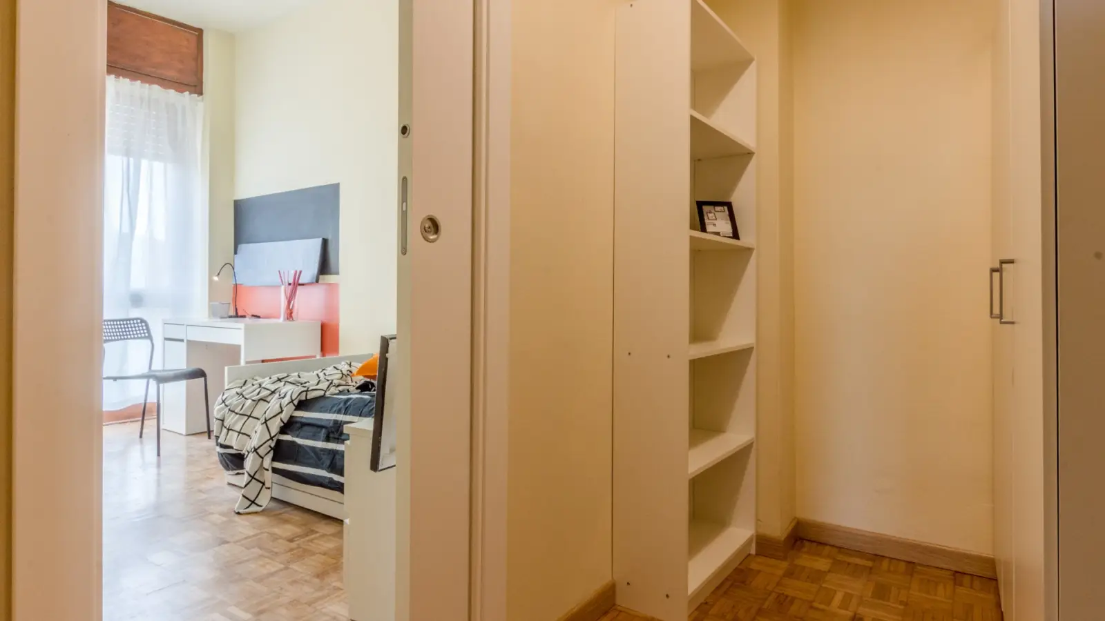 Zona Don Bosco, posición tranquila, si affitta una bellissima stanza singola Stanza Semplice ristrutturata appositamente per offrire comfort e comodità ai nostri Studenti. La estrofa è dotata di letto singolo, armadio 3 ante, scrivania con portaoggetti, comodino, tendaggi, specchio, libreria. Cabina armadio molto funzionale con porta a scorrimento. I colori delle pareti favoriscono il buon umore e aiutano nello studio.