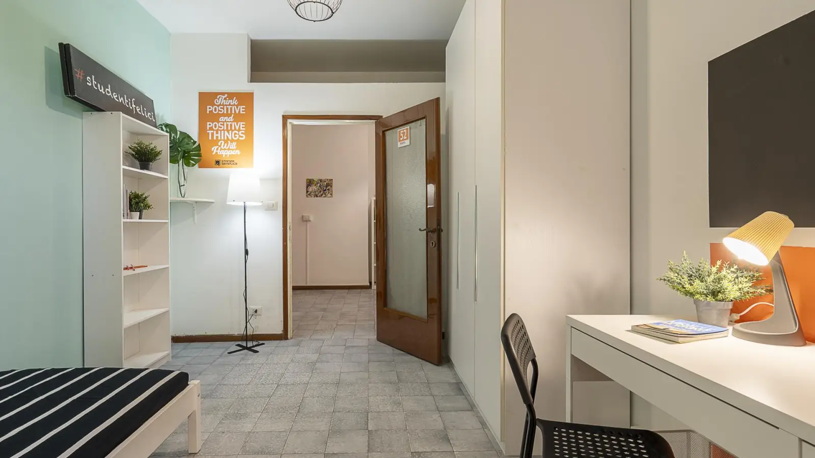 Zona zona Polo Fibonacci posición estratégica y ambita, si affitta una bellissima stanza singola Stanza Semplice ristrutturata appositamente per offrire comfort e comodità ai nostri Studenti. La estrofa è dotata di TV Led, letto singolo, armadio 3 ante, scrivania, comodino, tendaggi, specchio, libreria. I colori delle pareti favoriscono il buon umore e aiutano nello studio.