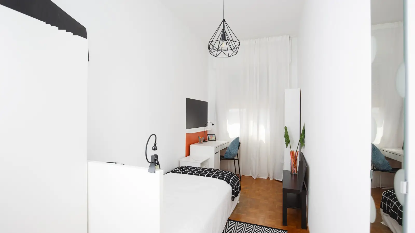 Zona Centro, posición estratégica y ambita, si affitta una bellissima stanza singola/suite Stanza Semplice ristrutturata appositamente per offrire comfort e comodità ai nostri Studenti. La estrofa è dotata di letto singolo, armadio 2 ante, scrivania con portaoggetti, comodino, tendaggi, specchio, libreria. I colori delle pareti favoriscono il buon umore e aiutano nello studio.