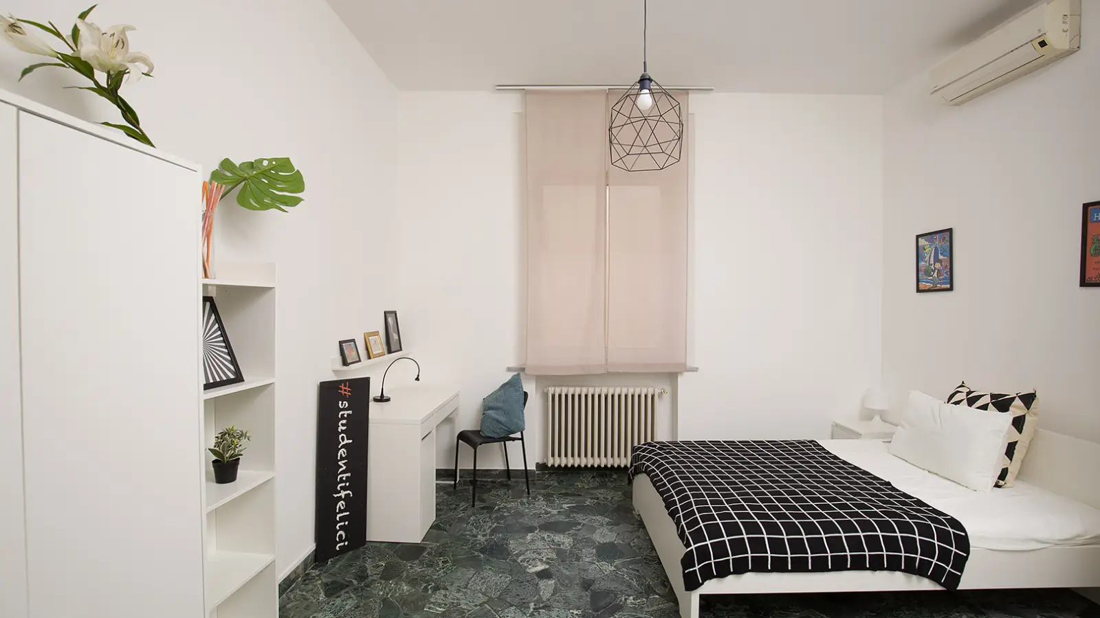 Zona Centro, posición estratégica y ambita, si affitta una bellissima stanza singola Stanza Semplice ristrutturata appositamente per offrire comfort e comodità ai nostri Studenti. La estrofa è dotata di letto da una piazza e mezzo, armadio 3 ante, scrivania, comodino, tendaggi, specchio, libreria. I colori delle pareti favoriscono il buon umore e aiutano nello studio.