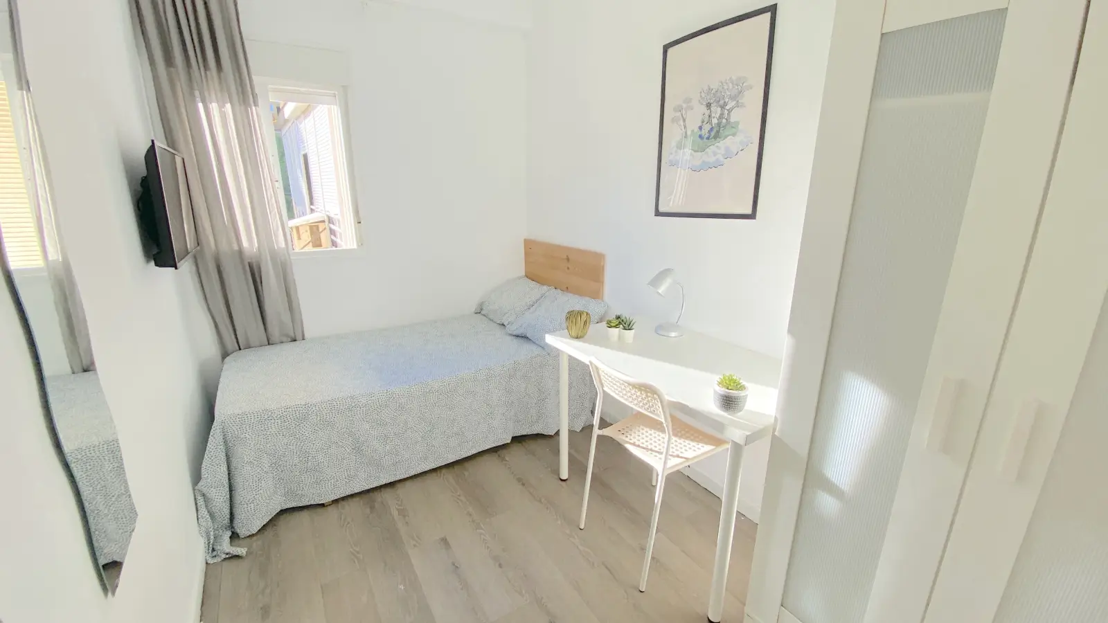 Esta espaciosa habitación individual en un piso compartido de 4 habitaciones es una excelente opción para estudiantes y profesionales que buscan alojamiento en La Palmilla. La habitación está completamente amueblada e incluye una cama individual, armario empotrado y escritorio. Dispone de televisión para relajarse y la ventana ofrece vistas a las calles de los alrededores. No se admiten parejas. Spotahome aún no ha verificado personalmente la propiedad, pero todos los propietarios de la plataforma pasan por un riguroso proceso de selección para garantizar su fiabilidad. El piso está situado en el animado barrio de La Palmilla, en Sevilla. En las inmediaciones, encontrará varios restaurantes como Bocatitos Street Food y Bar Koala. Esta zona es culturalmente rica, con atracciones como el Antiguo Hospital de las Cinco Llagas y espacios de arte urbano como Arte Callejero, que ofrecen un ambiente creativo e histórico. ¡Elija un espacio cómodo y acogedor en Sevilla!