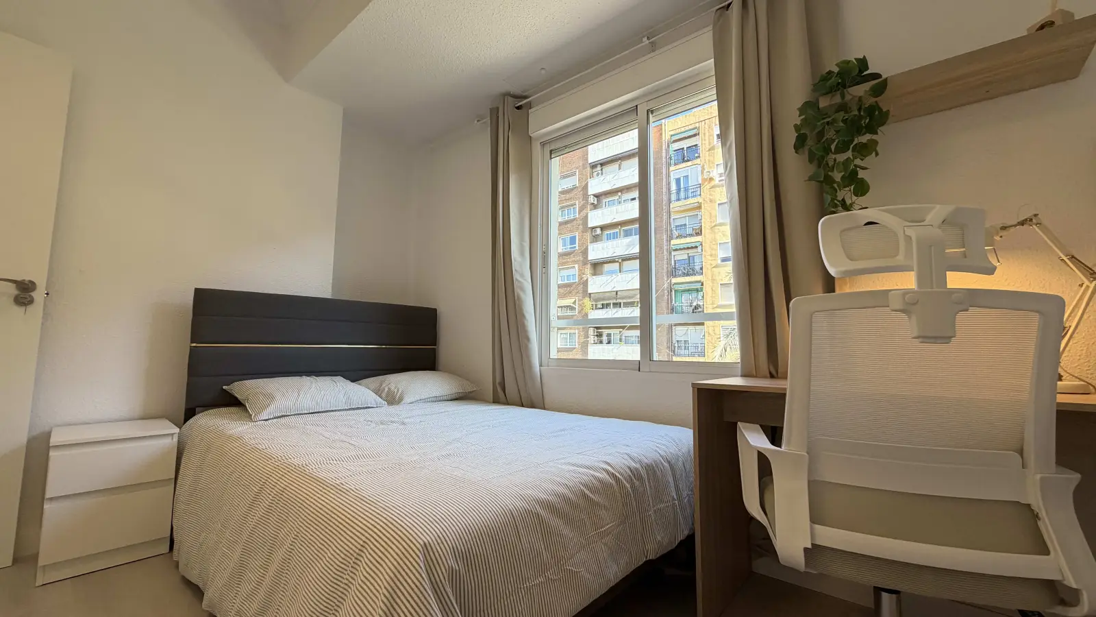 Spotahome ofrece una habitación privada amueblada en un piso compartido de cinco habitaciones situado en el barrio de Aiora, en Valencia. La habitación cuenta con una cómoda cama doble, garantizando un espacio de descanso. Tenga en cuenta que no se proporciona información específica sobre servicios como aire acondicionado, calefacción o conexión a internet. Aunque nuestro equipo de verificación no ha visitado personalmente este alojamiento, todos los propietarios de Spotahome son cuidadosamente seleccionados por su fiabilidad y seguridad.