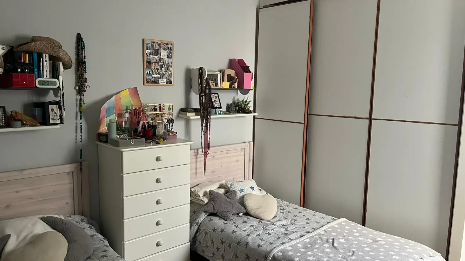 Esta es una habitación en un piso compartido de 3 habitaciones ubicado en el animado barrio de Sant Francesc en Valencia. La habitación está amueblada con dos camas individuales, un escritorio, una cómoda, estanterías y un armario empotrado. La ventana da a un patio interior. Tenga en cuenta que esta habitación no es adecuada para parejas. Aunque Spotahome no ha verificado personalmente este anuncio, le aseguramos que los propietarios de Spotahome pasan por un proceso de selección exhaustivo.