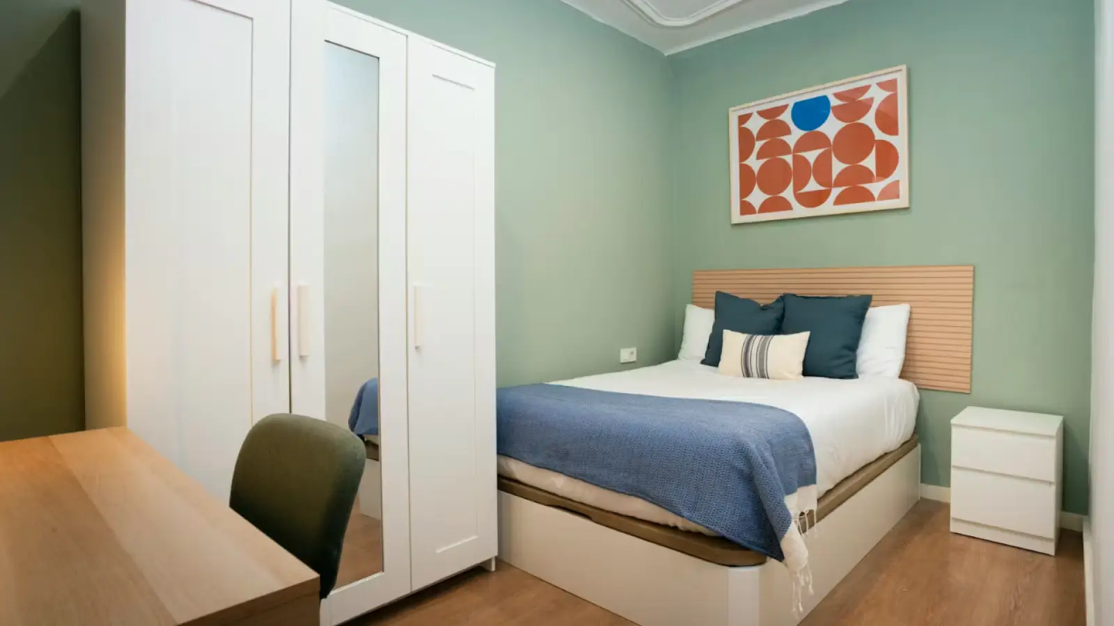 Vous cherchez une chambre privée à Barcelone ? Cette chambre meublée avec un lit double, un bureau et une armoire intégrée est disponible dans un appartement partagé de 4 chambres. Elle ne dispose pas de salle de bain privative et ne convient pas aux couples. Bien que Spotahome n'ait pas vérifié personnellement le logement, tous les propriétaires font l'objet d'une vérification complète afin de garantir votre tranquillité d'esprit lors de la location.