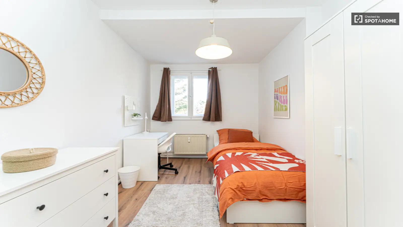 Bienvenue dans cette superbe chambre au sein d'un appartement de 9 chambres en colocation à Berlin ! Entièrement meublé, ce logement offre confort et praticité aux jeunes actifs comme aux étudiants. L'appartement comprend une cuisine équipée et les charges (électricité, eau, chauffage, gaz et Wi-Fi) sont incluses. Il est interdit de fumer et d'amener des animaux domestiques. Les couples ne sont pas admis afin de garantir une ambiance de vie harmonieuse. Spotahome a vérifié ce logement pour vous assurer qualité et sécurité.