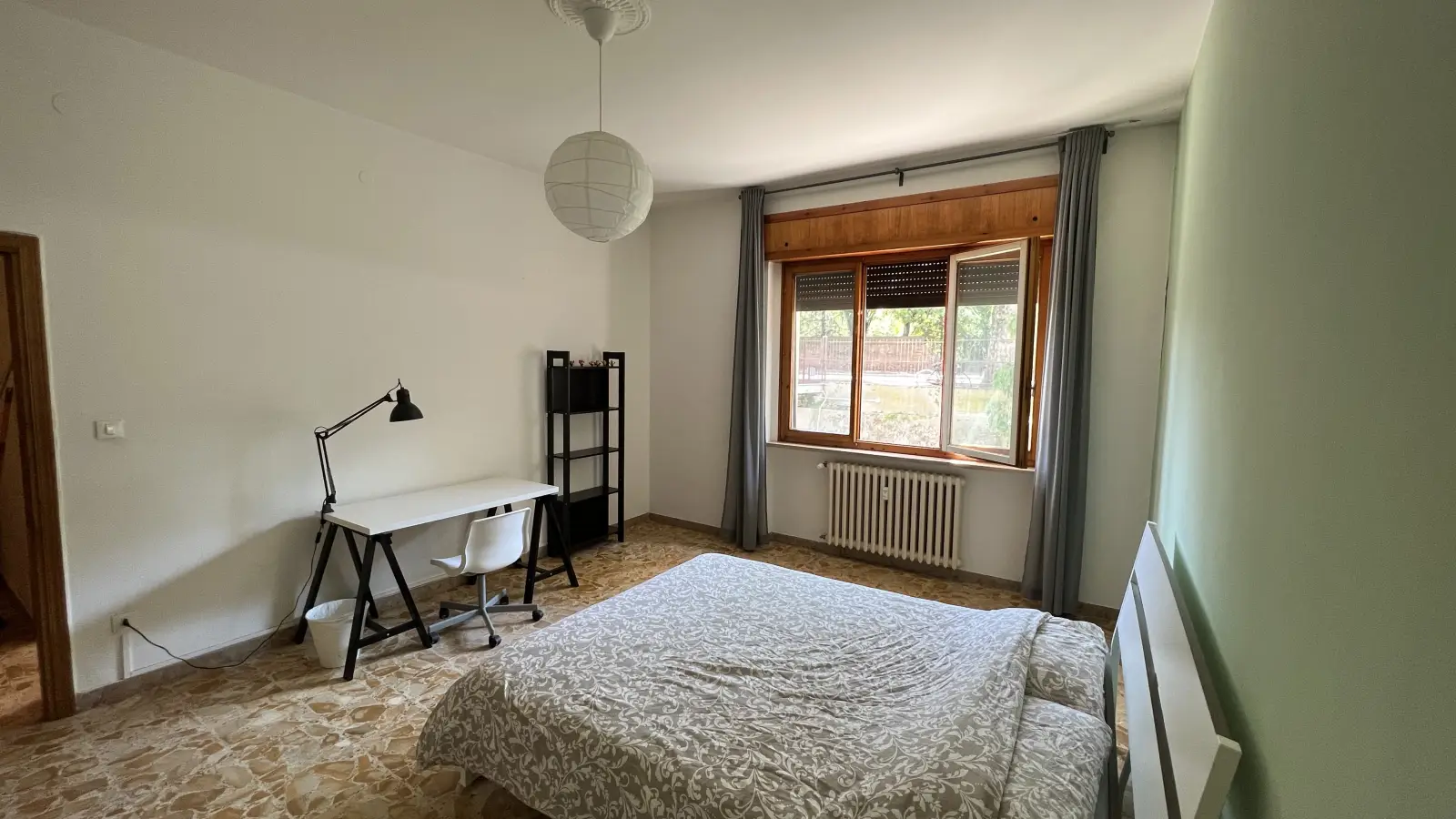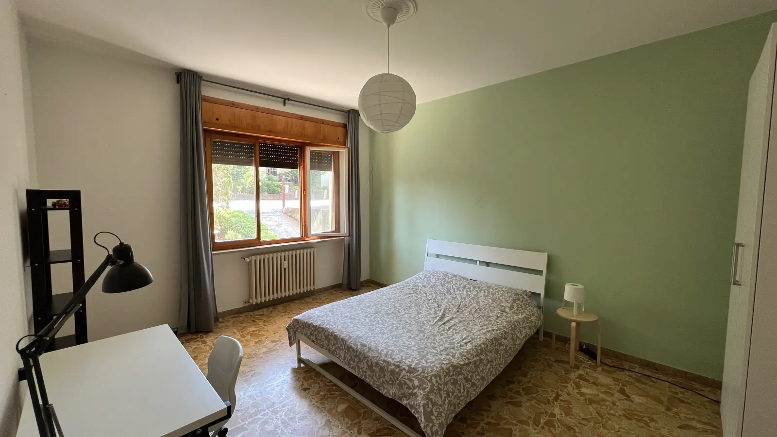 Single room with a double bed in a fully renovated flat rented exclusively to Erasmus and international students. The university campus is a ten-minute walk away, and the city centre is easily reachable by crossing the road. A bus stop is right in front of the building, and the “Parco Urbano” park is just behind it. The flat includes a private car park and a bicycle garage. The kitchen has a microwave, oven, fridge, cutlery and pans, and there is a washing machine in the bathroom. Please note that the flat has been recently refurbished, so some furniture or wall colours may differ. Monthly bills of one hundred forty euros (all-inclusive) cover internet, heating, gas, electricity, etc. The rental period is by semester: September–January (five months) and February–July (six months). August is optional for those wishing to stay longer. There is also a one-off fee of two hundred euros for the contract.