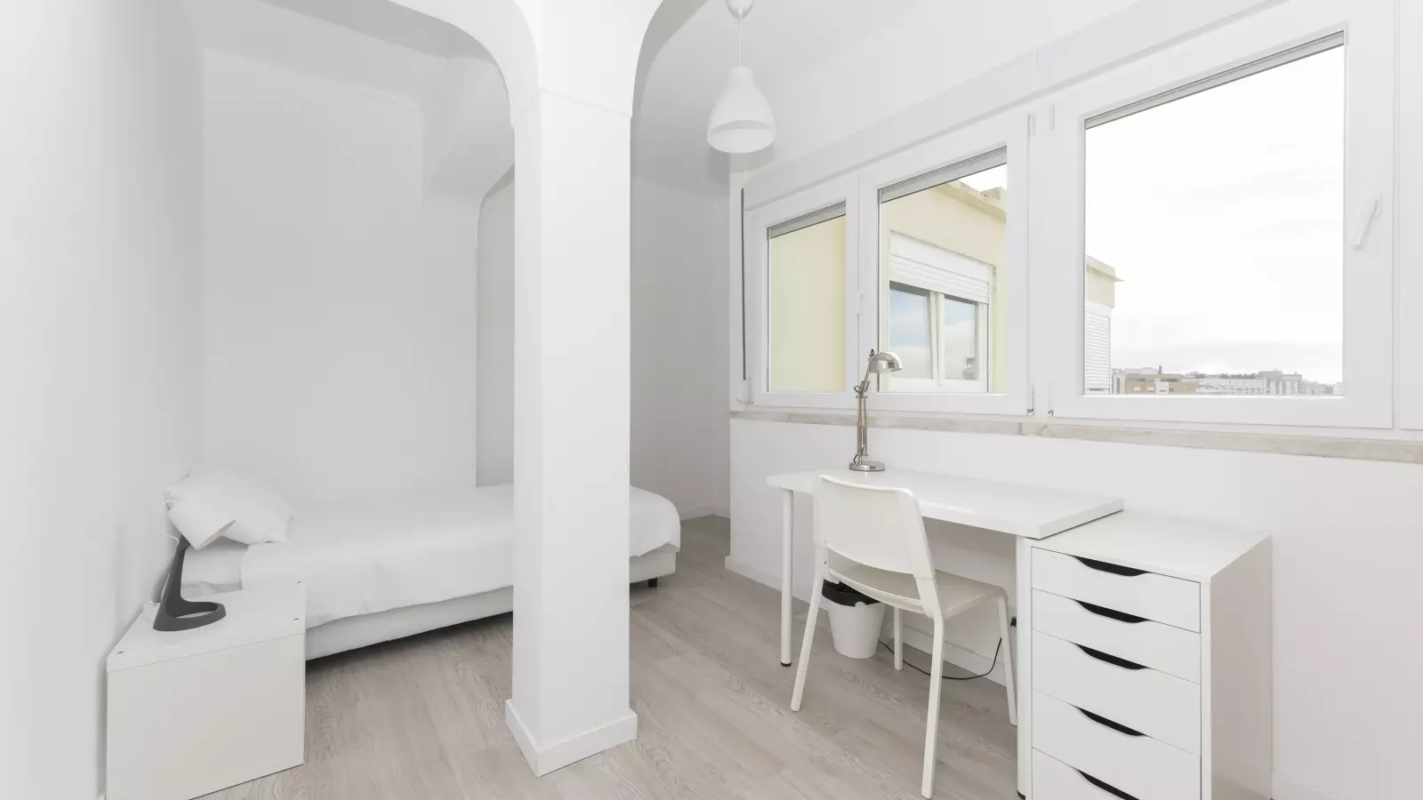 Chambres à louer dans une maison meublée de 11 chambres sur 7 étages sur R. Luís De Freitas Branco. La propriété comprend le nettoyage hebdomadaire des parties communes et de la terrasse.