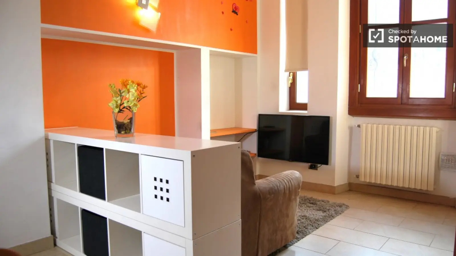 Un appartement moderne d'une chambre avec une salle de bain situé sur Via Garegnano, une rue calme dans le quartier de Gallaratese. Cet appartement accueillant est décoré dans des tons principalement neutres, mais il y a aussi des touches de couleurs vives qui apportent vie et vivacité dans le mélange. Cette maison confortable est entièrement équipée avec tout ce dont vous avez besoin pour une expérience agréable, y compris le chauffage central et la climatisation, une machine à laver, deux téléviseurs, un lecteur DVD et une connexion Wi-Fi gratuite. L'appartement est intérieur et a une superficie de 45 m².