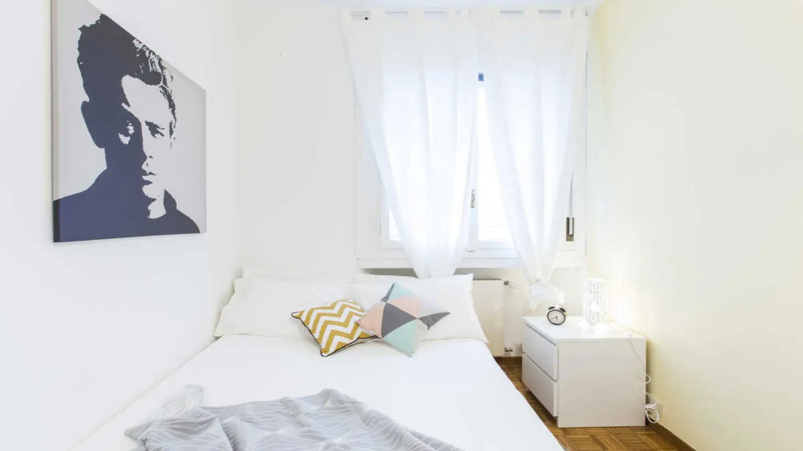 Chambre individuelle dans un appartement partagé, composé de 3 chambres et 1 salle de bain. D'environ 11 m² avec un lit et demi et un poste de travail. Avec wifi, services de conciergerie, lave-vaisselle, lave-linge. Classe énergétique : G, IPE 283,49 Kwh/m² an.