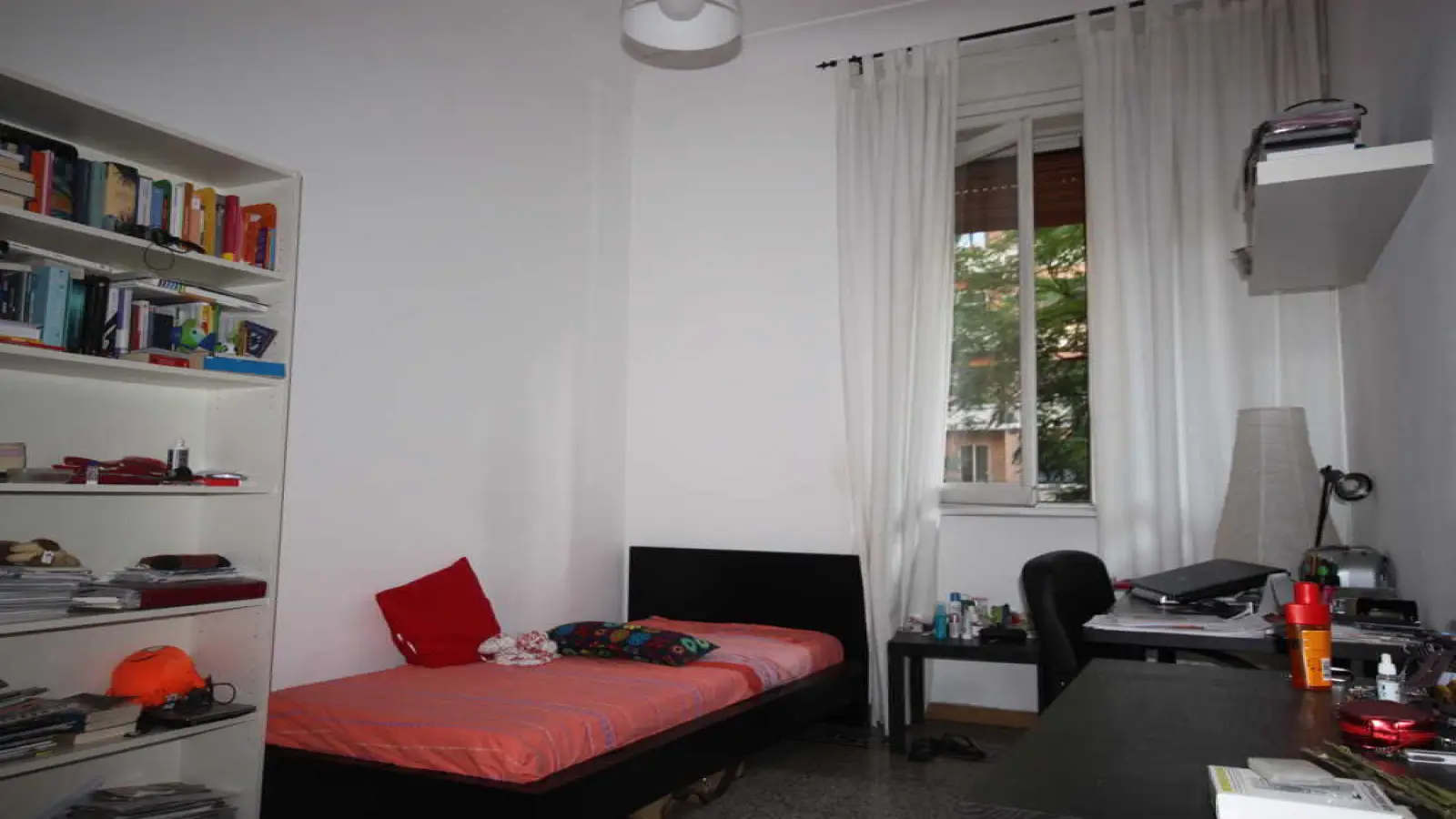 Chambre individuelle dans un appartement partagé, composé de 4 chambres et 2 salles de bain. D'environ 17 m² avec un lit simple et un poste de travail. Avec wifi, services de conciergerie, lave-vaisselle, lave-linge. Classe énergétique : F, IPE 159,57 Kwh/m² an.
