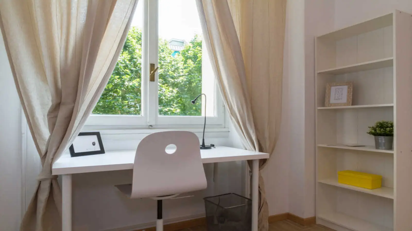 Chambre individuelle dans un appartement partagé, composé de 3 chambres et 1 salle de bain. D'environ 16 m² avec un lit et demi et un poste de travail. Avec wifi, services de conciergerie, lave-vaisselle, lave-linge. Classe énergétique : G, IPE 316,66 Kwh/m² an.