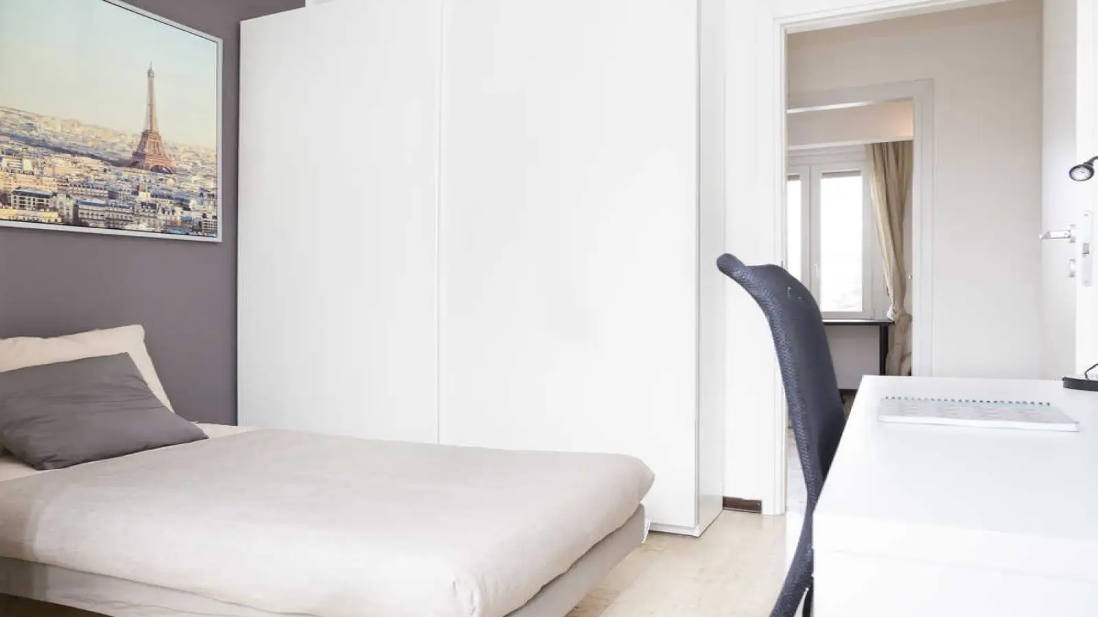 D'environ 11 m², elle comprend un lit simple et un espace de travail. Wi-Fi, lave-vaisselle et lave-linge sont inclus.