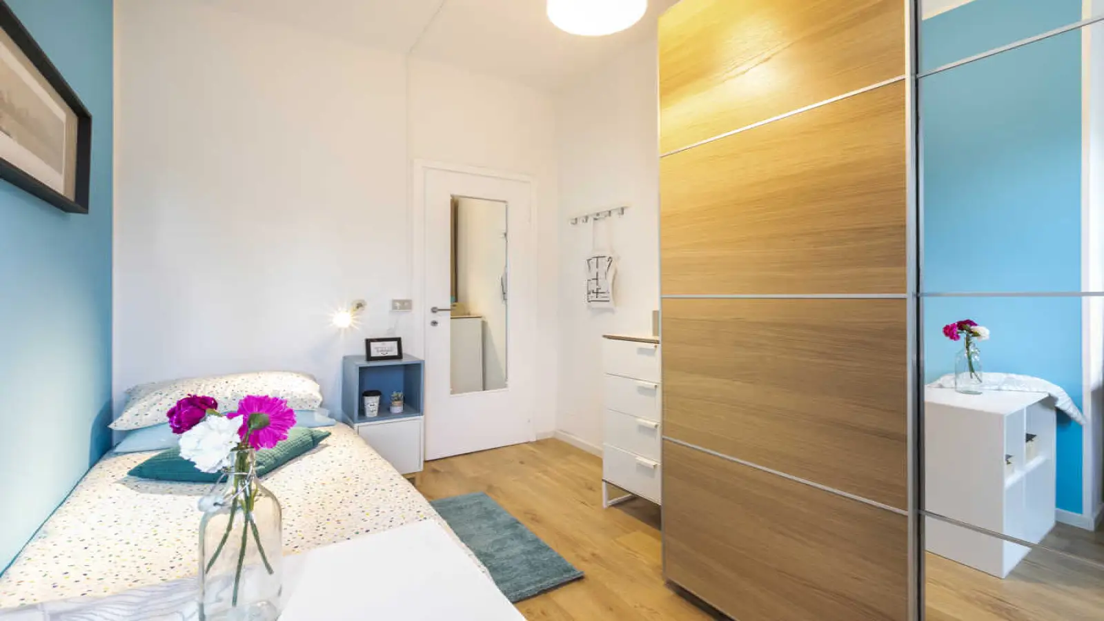 Chambre individuelle dans un appartement partagé, composé de 3 chambres et d'une salle de bain.