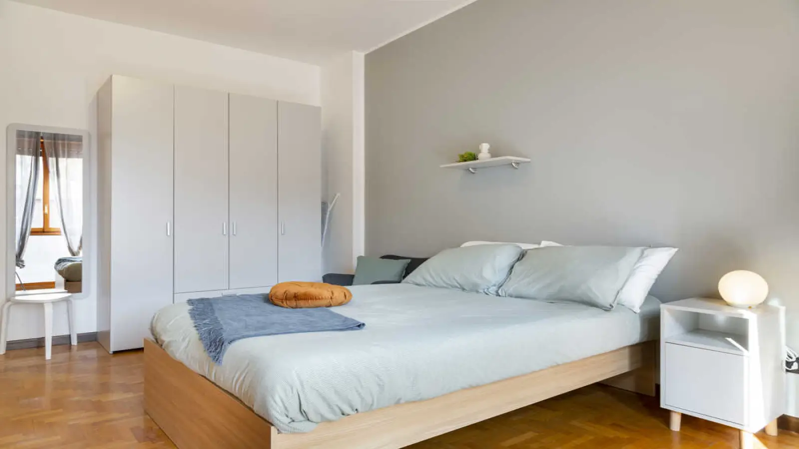 Chambre individuelle dans un appartement partagé, composé de 3 chambres et 1 salle de bain. D'environ 20 m² avec un lit et demi et un poste de travail. Avec wifi, services de conciergerie, lave-vaisselle, lave-linge. Classe énergétique : E, IPE 108,56 Kwh/m² an.