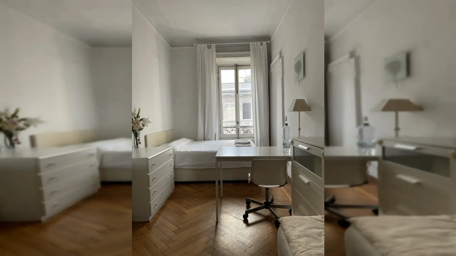 Cette chambre se trouve dans un appartement meublé de trois chambres en colocation, situé dans le quartier de Magenta-San Vittore à Milan. L'appartement comprend une cuisine entièrement équipée avec four et lave-linge pour le confort des locataires. Les animaux de compagnie ne sont pas admis et il est interdit de fumer.
