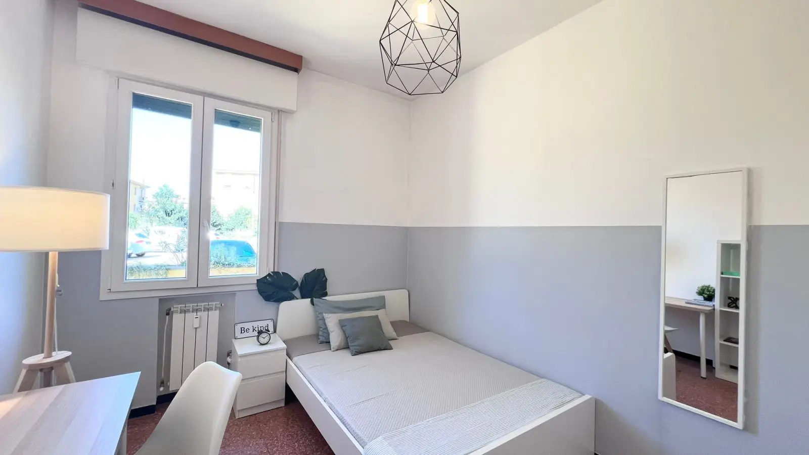 Zona Centro, position stratégique et ambitieuse, 5 minutes à pied de l'Università Cattolica et du Duomo, si affitta una bellissima suite Stanza Semplice ristrutturata appositamente per offree comfort e comodità ai nostri studenti. La strophe è dotata di letto matrimoniale, armadio 3 ante, scrivania con portaoggetti, comodino, tendaggi, specchio, scarpiera, libreria. Je colori delle pareti favoriscono il buon umore e aiutano nello studio.