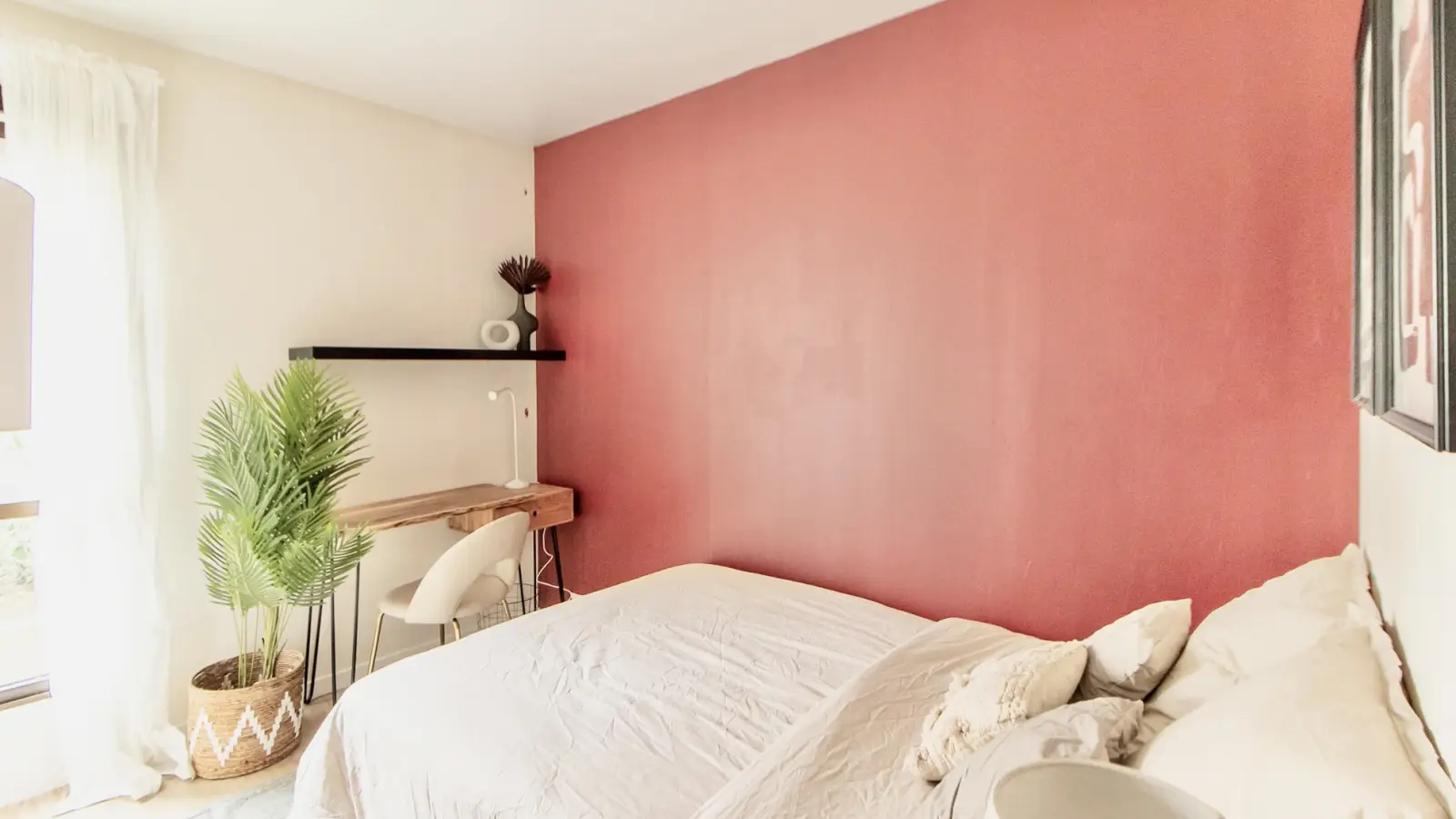 Bienvenue à Puteaux ! Cette chambre de 11 m² se situe dans un appartement de 100 m² rénové avec goût. Décorée dans des tons blancs et roses, elle comprend un coin nuit et un bureau, prêts à vous accueillir. En choisissant la coliving aux portes de Paris, vous profiterez d'un confort et d'une tranquillité incomparables. Avec la coliving, vous avez de la chance : votre loyer mensuel inclut déjà les charges, l'assurance habitation et l'abonnement internet. Comme toutes les chambres de cet appartement, celle-ci est éligible à l'APL (Aide au Logement), selon les conditions de la CAF (Centre d'Aide au Logement). Alors, qu'attendez-vous pour commencer votre séjour en coliving ?