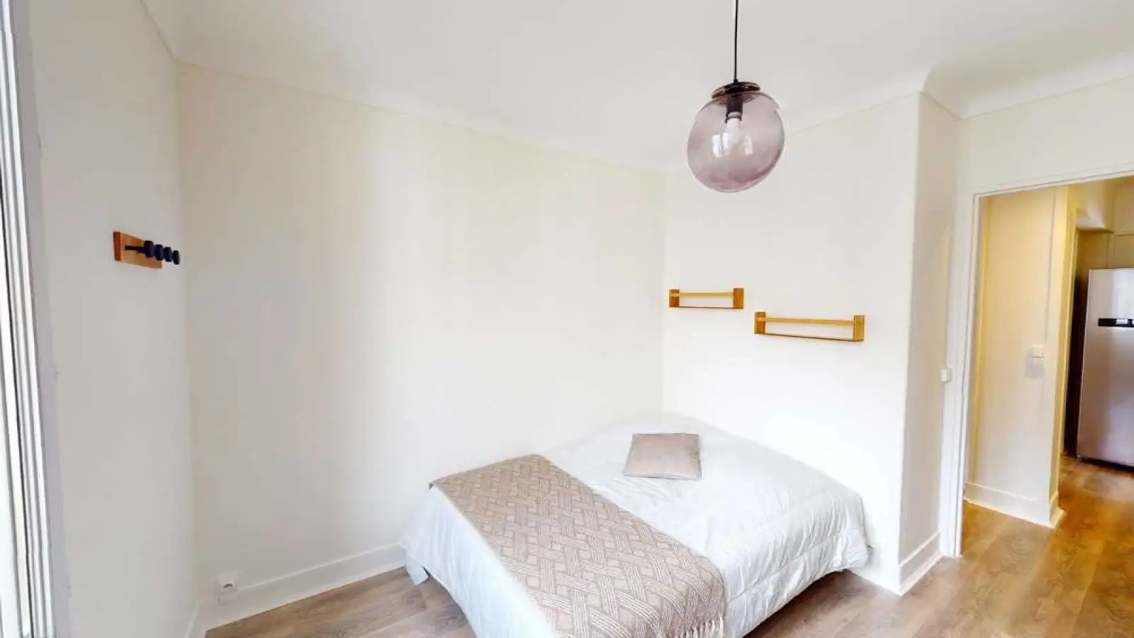 Cette charmante chambre privée, située dans une colocation entièrement meublée et équipée avec toutes les charges à Paris, allie confort et design. Elle est meublée avec goût et comprend un lit avec oreillers et couette. Il ne manque plus que vos affaires pour vous sentir comme chez vous ! La chambre peut être fermée à clé si vous souhaitez plus d'intimité. La colocation se trouve dans le quartier des Batignolles, en plein cœur de Paris. Commerces, transports en commun et restaurants sont facilement accessibles. L'appartement est situé au 5ème étage avec ascenseur. Il est entièrement équipé et comprend une grande cuisine avec réfrigérateur, micro-ondes, casseroles, vaisselle, ustensiles de cuisine, bouilloire… Vous y trouverez également une table à repasser, un lave-linge, un étendoir et un fer à repasser. De plus, le matériel de nettoyage est fourni : aspirateur sans sac, pelle et balayette, balai, serpillière et seau… Chaque colocation meublée Joivy inclut toutes les charges : assurance habitation, eau, électricité, Wi-Fi illimité, charges de copropriété et taxe d'enlèvement des ordures ménagères.