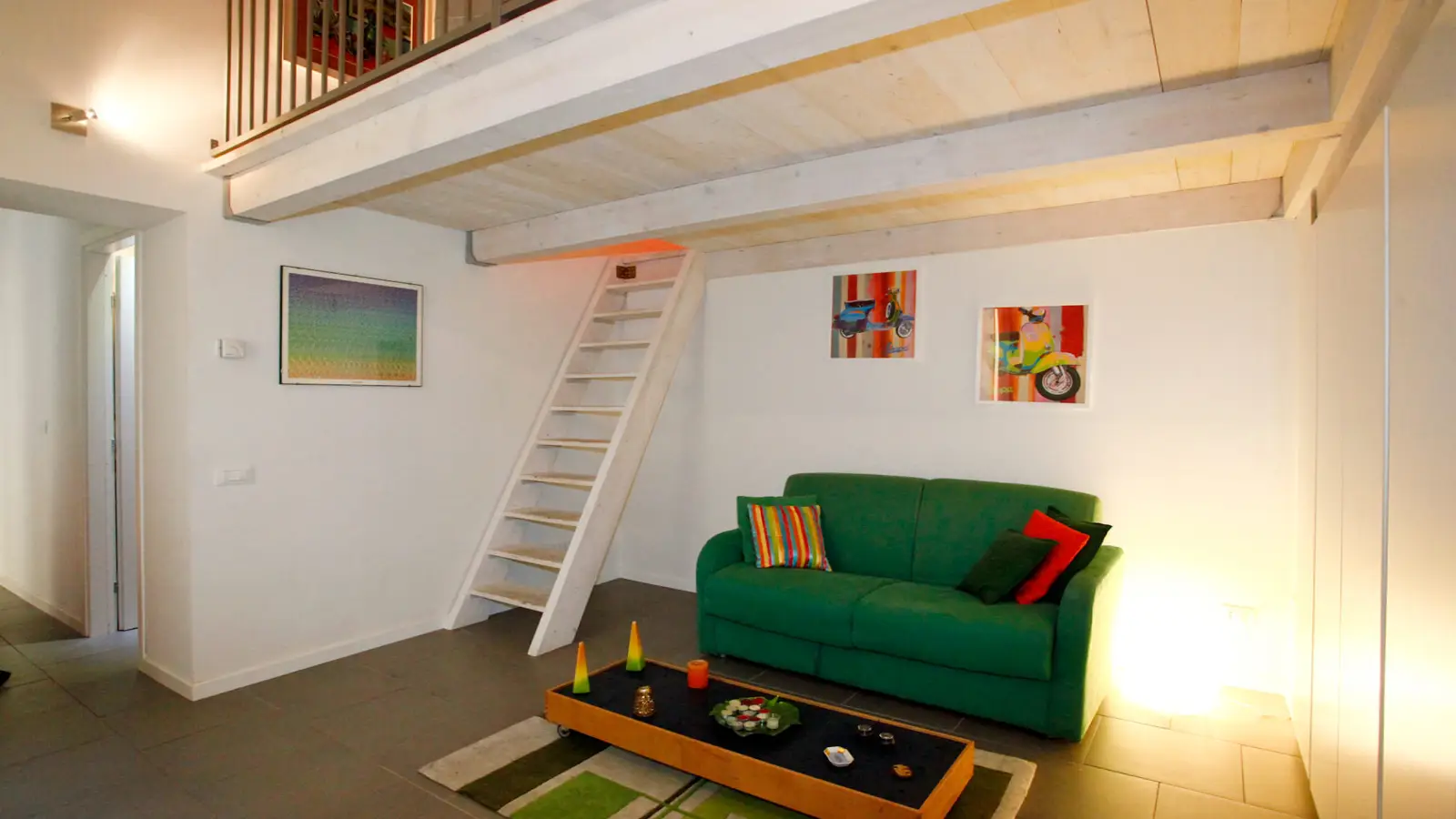 Un superbe studio est disponible à la location dans le centre de Rome. Cette charmante propriété est ultra moderne et élégamment décorée. Le salon / salle à manger a une mezzanine qui sert de confortable chambre double. La cuisine de designer a tout ce dont vous avez besoin en termes d'appareils électroménagers, plus un balcon intérieur traditionnellement romain.