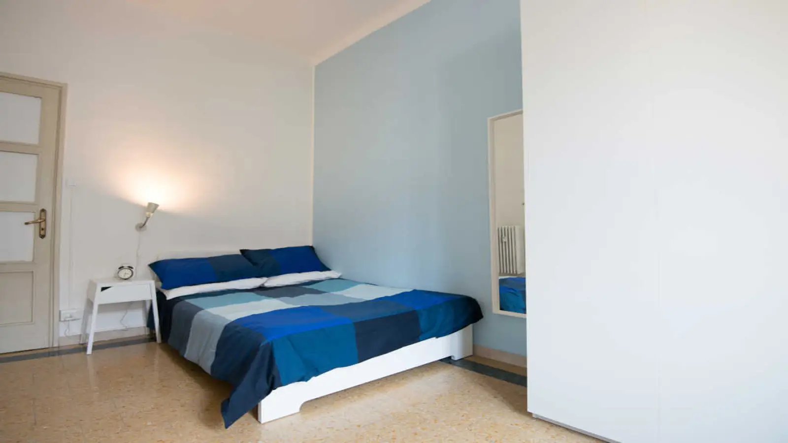 Chambre individuelle dans un appartement partagé, composé de 4 chambres et 2 salles de bain. D'environ 19 m² avec un lit et demi et un poste de travail. Avec wifi, parking vélo, lave-vaisselle, lave-linge. Classe énergétique : E, IPE 105,03 Kwh/m² an.